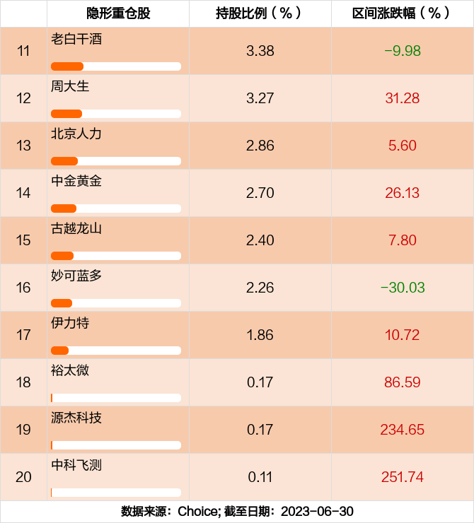 2023年度,截止至6月30日,工银丰盈回报灵活配置混合A基金收益-7.86%,同期沪深300收益-0.75%,同类排名1823/2265。 基金年度回报 ![]() ![]() 前十大重仓股 工银丰盈回报灵活配置混合A前十大重仓股分别是贵州茅台,百润股份,泸州老窖,五粮液,千禾味业,今世缘,盐津铺子,中炬高新,顺鑫农业,菜百股份,前十大重仓股合计持股占总持仓比例72.71%。 工银丰盈回报灵活配置混合A前十大重仓股 ![]() “腰部”持仓 根据工银丰盈回报灵活配置混合A2023年半年报,该基金持仓比例排名11到20个股依次为:老白干酒,周大生,北京人力,中金黄金,古越龙山,妙可蓝多,伊力特,裕太微,源杰科技,中科飞测。 工银丰盈回报灵活配置混合A隐形重仓股 ![]() 加仓前十大个股 本期基金累计买入金额最高的前十大个股分别是伊力特,千禾味业,顺鑫农业,泸州老窖,伊利股份,老白干酒,中炬高新,酒鬼酒,千味央厨,欣锐科技。 工银丰盈回报灵活配置混合A加仓前十大个股 ![]() 减仓前十大个股 本期基金累计卖出金额最高的前十大个股分别是酒鬼酒,舍得酒业,山西汾酒,中炬高新,顺鑫农业,五粮液,贵州茅台,泸州老窖,伊力特,伊利股份。 工银丰盈回报灵活配置混合A减仓前十大个股 ![]() 基金换手率 基金最新换手率为178.51%上一期换手率为488.88%。历史换手率最高为2022年12月31日,高达488.88%。 基金换手率变化 ![]() 基金持有人结构 根据工银丰盈回报灵活配置混合A2023年半年报,最新持有人户数为9401人,较上期环比增加-8.14%。其中,个人持有者占比95.8%,机构持有者占比4.2%。 基金持有人结构变化 ![]() 免责声明:本文基于大数据生产,仅供参考,不构成任何投资建议,据此操作风险自担。 |