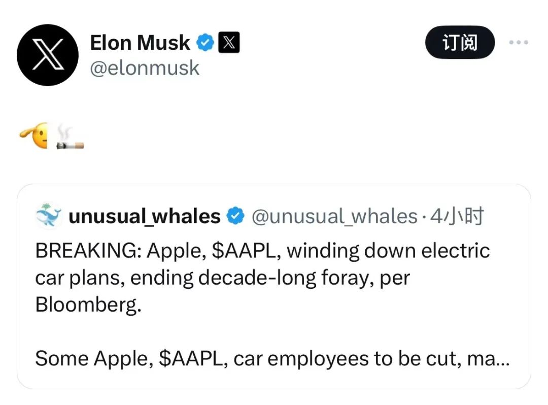 美东时间2月27日,市场继续等待本周晚些时候公布的通胀数据以分析美联储降息可能,美三大指数涨跌不一,接近收平。 知名科技记者爆料称苹果决定取消电动车项目转向AI,马斯克回应了!苹果股价微涨。减肥药实验结果积极,维京治疗暴涨121%。 多只AI概念股仍被“热炒”。英伟达持股的SoundHound.ai早盘一度涨近40%,收涨近19.3%;BigBear.ai收涨38%。 市场等待PCE等通胀数据 美三大股指微幅震荡 美东时间2月27日,投资者继续等待PCE等重磅通胀数据的公布,以判断美联储未来货币政策路径,美三大指数微幅震荡,涨跌不一,接近收平。 截至收盘,道指跌幅为0.25%,报38972.41点;纳指涨幅为0.37%,报16035.3点;标普500指数涨幅为0.17%,报5078.18点。 ![]() 根据智通财经,高盛首席执行官David Solomon称,消费支出疲软令他对美国经济将避免衰退的预期产生疑问。Solomon当地时间周二在一个会议上说,世界正在为软着陆做好准备,但他个人对软着陆有点不确定。Solomon表示,企业负责人告诉他,在物价仍然高企的情况下,“月光族”消费变得吃紧。他说,“我认为现状还不错,只是经济的不确定性比市场预期的要更高。” 苹果惊爆取消电动车项目 马斯克也回应了 美东时间2月27日下午,全球知名科技记者马克·古尔曼(Mark Gurman)在社交媒体上援引知情人士称,苹果取消了长达十年、投入数十亿美元的电动汽车计划。 ![]() (来源:社交媒体X截图) 报道称,知情人士表示,当地时间周二,苹果在内部披露了这一消息,令参与该项目的近2000名员工感到非常意外。知情人士透露,这一决定是首席运营官杰夫·威廉姆斯和负责这项工作的副总裁凯文·林奇共同做出的。 这两位高管告诉员工,该项目将开始逐渐减少,许多从事汽车研发的员工将被调整至人工智能部门。这些员工将专注于可生成的人工智能项目,这是该公司日益重要的工作重点。 特斯拉CEO马斯克也在自己的社交账号上转发了这一消息,并配上了“致敬”“点烟”的表情包以做回应。 ![]() (来源:社交媒体X截图) 报道还称,苹果汽车团队还有数百名硬件工程师和汽车设计师,他们也有可能申请其他苹果团队的工作。且苹果公司将会裁员,但目前还不确定裁员人数。 苹果公司拒绝对这一消息做出评论。 消息一出,苹果股价由跌转涨,最终收涨0.81%。 减肥药实验结果积极 维京治疗暴涨121% 美东时间2月27日,维京治疗(Viking Therapeutics)股价暴涨逾121%。此前,该公司宣布其减肥药VK2735的二期试验取得积极结果。截至当日收盘,Viking Therapeutics报85.05美元,涨幅为121.02%,最新市值为85.47亿美元。 ![]() 两大减肥药巨头诺和诺德和礼来股价承压,分别下跌1.04%和0.66%。 ![]() 公开资料显示,VK2735是一种GLP-1受体激动剂,Viking正在开发一种可注射和口服的减肥药,用于治疗肥胖症和糖尿病。该试验满足了所有主要和次要终点,显示与安慰剂相比,在所有剂量下体重都具有统计学上的显著降低。接受每周剂量药物治疗的患者在13周后体重比基线下降了14.7%。35人入组时的平均体重为101.1公斤,13周过去平均减肥14.6公斤,其中有88%的受试患者减重比例超过10%。 多只AI概念股仍被“热炒” 美东时间2月27日,尽管英伟达当日收跌,但多只AI概念股仍被“热炒”。 英伟达持股的SoundHound.ai早盘一度涨近40%,收涨近19.3%;BigBear.ai收涨38%,C3.ai、Palantir涨超4%。 ![]() |