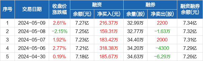 广东宏大融资融券信息显示,2024年5月9日融资净买入216.37万元;融资余额7.27亿元,较前一日增加0.3%。 融资方面,当日融资买入941.07万元,融资偿还724.7万元,融资净买入216.37万元,连续5日净买入累计1063.14万元。融券方面,融券卖出5100股,融券偿还2900股,融券余量32.99万股,融券余额739.64万元。融资融券余额合计7.34亿元。 广东宏大融资融券交易明细(05-09) ![]() 广东宏大历史融资融券数据一览 ![]() 免责声明:本文基于大数据生产,仅供参考,不构成任何投资建议,据此操作风险自担。 |