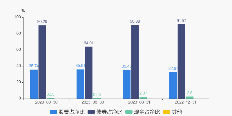 兴业聚华混合A12月净值涨跌幅0.76%,在混合型-偏债类1401只基金中排名第81。 一、历史月度收益情况 基金成立以来业绩为27.9%,历史月度收益情况如下图: ![]() 数据来源:东方财富Choice数据,银河证券;数据截止至2023-12-31 二、基金基本情况 兴业聚华混合A(005984)成立于2020年3月20日,为混合型-偏债型基金,目前规模15.71亿。基金经理丁进2020年3月20日正式接管该基金,任期回报为27.90%。 基金经理变动一览 ![]() 数据来源:东方财富Choice数据,银河证券 三、基金持仓情况 资产配置一览 ![]() 数据说明:如果出现各资产总和占净值比例超过100%的现象,一般是由于基金在运作过程中存在负债,如存在应付账款或债券质押杠杆交易等情况。 数据来源:东方财富Choice数据,银河证券;数据截止至2023-09-30 前十大重仓股 ![]() 数据来源:东方财富Choice数据,银河证券;数据截止至2023-09-30 四、基金风险收益分析 ![]() 数据来源:东方财富Choice数据,银河证券 数据说明:夏普比例表示每承受一单位风险,预期可以拿到多少超额收益,指标越大越好。夏普比例越大则基金性价比越高。 波动率表示基金收益变化程度的指标,指标越小越好,波动率越大则风险也越高。 最大回撤表示基金净值从最高到最低的下降幅度。指标越小越好,最大回撤越大则风险控制能力越差。 收益回撤比表示基金收益与回撤的比例。指标数值越大越好。收益回撤比越大则基金盈利能力和控制风险能力越好。 免责声明:本文基于大数据生产,仅供参考,不构成任何投资建议,据此操作风险自担。 |