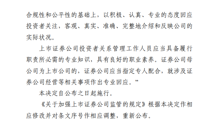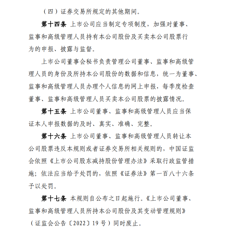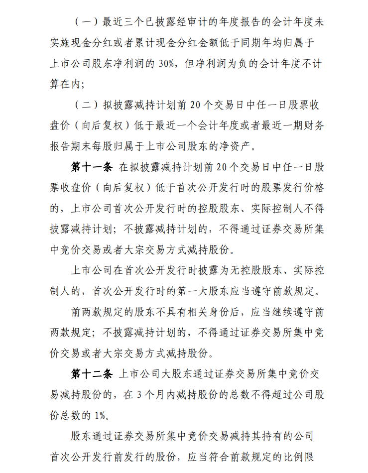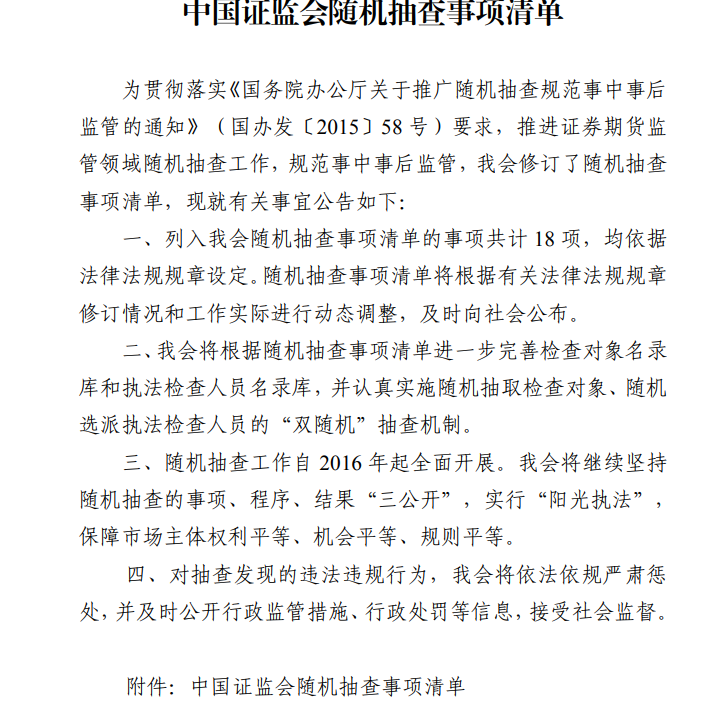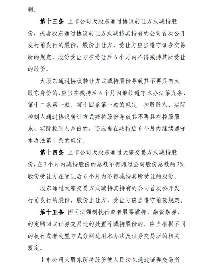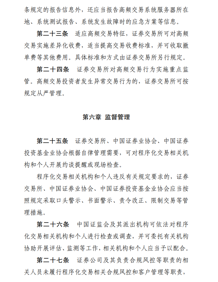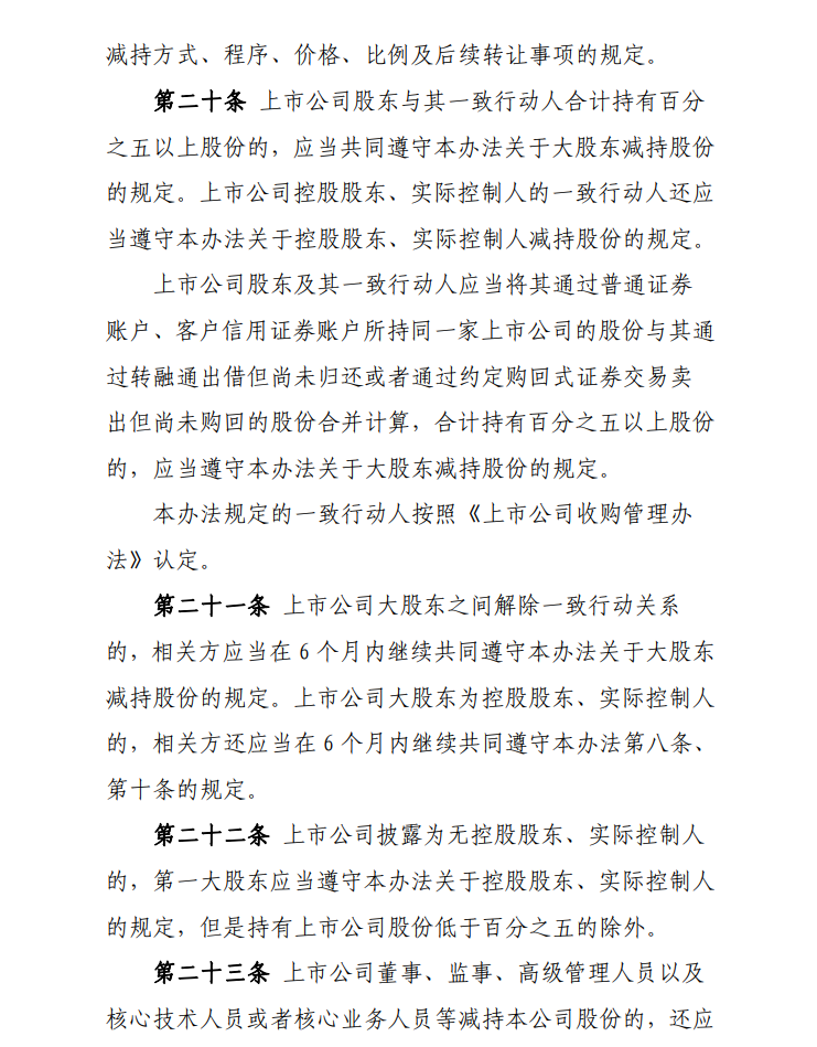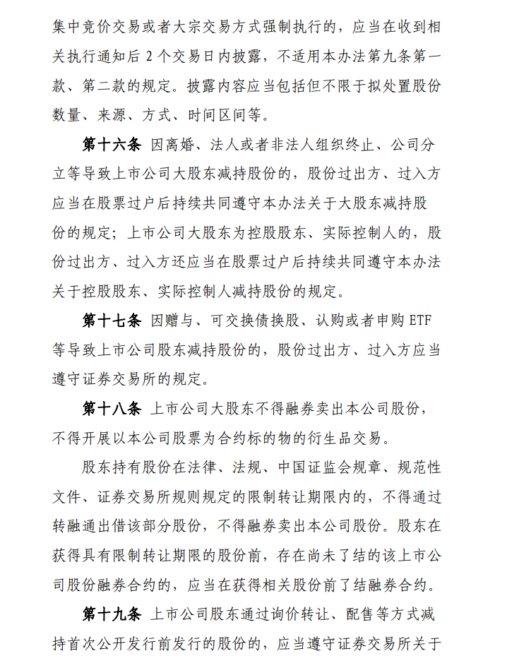 为深入贯彻落实中央金融工作会议以及《国务院关于加强监管防范风险推动资本市场高质量发展的若干意见》(以下简称《若干意见》)精神,推动资本市场“1+N”政策体系形成和落地实施,证监会制定并陆续出台相关配套政策文件和制度规则,现就涉及发行监管、上市公司监管、证券公司监管、交易监管等方面的6项规则草案公开征求意见。 ![]() 发行监管方面,包括2项规则修订。 一是修订《科创属性评价指引(试行)》。为落实《若干意见》关于严把发行上市准入关、完善科创板科创属性评价标准等要求,对申报科创板企业的研发投入金额、发明专利数量以及营业收入增长率设置更高标准,强化衡量科研投入、科研成果和成长性等指标要求,进一步引导中介机构提高申报企业质量,凸显科创板“硬科技”特色。 二是修订《中国证监会随机抽查事项清单》。为落实《若干意见》关于扩大对在审企业及相关中介机构现场检查覆盖面等要求,将首发企业随机抽取检查的比例由5%大幅提升至20%,并相应提高问题导向现场检查和交易所现场督导的比例,调整后,现场检查和督导整体比例将不低于三分之一。 上市公司监管方面,包括1项规则制定、1项规则修订。 一是制定《上市公司股东减持股份管理办法》。将原有的《上市公司股东、董监高减持股份的若干规定》上升为《上市公司股东减持股份管理办法》,以证监会规章的形式发布。内容上,保持原减持规定基本框架不变,同时结合各方面关注重点,在严格规范大股东减持、有效防范绕道减持、细化违规责任条款、强化关键主体义务等方面做了针对性完善。 二是修订《上市公司董事、监事和高级管理人员所持本公司股份及其变动管理规则》。吸收整合原减持规定中有关规范董监高减持股份的要求,进一步明确规定离婚分割股票后各方共同遵守原有减持限制。 证券公司监管方面,主要是修订《关于加强上市证券公司监管的规定》,旨在通过加强监管,发挥上市证券公司推动行业高质量发展的引领示范作用。 重点包括:督促公司端正经营理念,把功能性放在首要位置,聚焦服务实体经济和居民财富管理等主责主业;发挥现代企业治理的有效性,强化内部制衡,完善人员管理,优化激励约束,加强对境内外子公司的管控;落实全面风险管理和全员合规要求,强化风控指标信息披露;合理审慎开展融资,提高资金运用效率,提升投资者回报。 交易监管方面,制定《证券市场程序化交易管理规定(试行)》。 一是明确程序化交易的定义和总体要求。 二是明确报告要求。 三是明确交易监测和风险防控要求。 四是加强信息系统管理。五是加强高频交易监管。 六是明确监督管理安排。 七是明确北向程序化交易按照内外资一致的原则,纳入报告管理,执行交易监控标准,其他管理事项参照适用本规定。 此外,沪深北证券交易所同步就《股票发行上市审核规则》《股票上市规则》等19项具体业务规则向社会公开征求意见,涉及提高上市条件、规范减持、严格退市标准等方面。 欢迎社会各界提出宝贵意见。证监会及交易所将根据公开征求意见情况对上述制度规则草案进一步修改完善,履行程序后发布实施。 全部内容: ![]() ![]() ![]() ![]() ![]() ![]() ![]() ![]() ![]() ![]() ![]() ![]() ![]() ![]() ![]() ![]() ![]() ![]() ![]() ![]() ![]() ![]() ![]() ![]() ![]() ![]() ![]() ![]() ![]() ![]() ![]() ![]() ![]() ![]() ![]() ![]() ![]() ![]() ![]() ![]() ![]() |