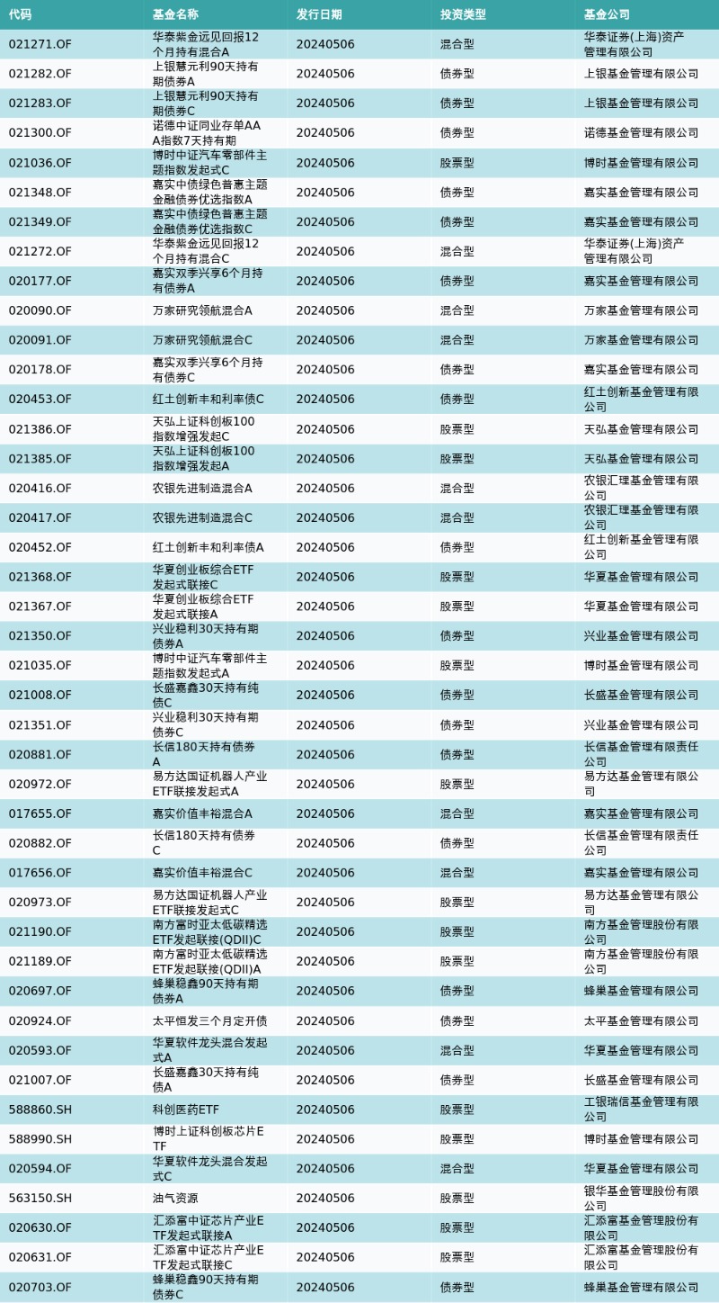 一、证券市场回顾 同花顺数据显示,5月6日上证综指日内上涨1.16%,收于3140.72点,最高3142.38点;深证成指日内上涨2.0%,收于9779.21点,最高9804.2点;创业板指日内上涨1.98%,收于1895.21点,最高1907.02点。北向资金由上个交易日的流出86.17亿元转变成流入93.16亿元。 二、融资融券情况 沪深两市的融资融券余额为15267.56亿元,其中融资余额14878.97亿元,融券余额388.59亿元。两市融资融券余额较前一交易日增加158.62亿元。分市场来看,沪市两融余额为8131.25亿元,相较前一交易日增加88.53亿元;深市两融余额7136.3亿元,相较前一交易日增加70.08亿元。 5月6日,两市共有3301只个股有融资资金买入,其中中国平安、赛力斯、药明康德排名前三,买入金额分别9.33亿元、8.77亿元、7.61亿元。融资买入额前10个股详情见下表: ![]() 三、基金发行情况 5月6日有43只新基金发行,分别为:华泰紫金远见回报12个月持有混合A、上银慧元利90天持有期债券A、上银慧元利90天持有期债券C、诺德中证同业存单AAA指数7天持有期、博时中证汽车零部件主题指数发起式C、嘉实中债绿色普惠主题金融债券优选指数A、嘉实中债绿色普惠主题金融债券优选指数C、华泰紫金远见回报12个月持有混合C、嘉实双季兴享6个月持有债券A、万家研究领航混合A、万家研究领航混合C、嘉实双季兴享6个月持有债券C、红土创新丰和利率债C、天弘上证科创板100指数增强发起C、天弘上证科创板100指数增强发起A、农银先进制造混合A、农银先进制造混合C、红土创新丰和利率债A、华夏创业板综合ETF发起式联接C、华夏创业板综合ETF发起式联接A、兴业稳利30天持有期债券A、博时中证汽车零部件主题指数发起式A、长盛嘉鑫30天持有纯债C、兴业稳利30天持有期债券C、长信180天持有债券A、易方达国证机器人产业ETF联接发起式A、嘉实价值丰裕混合A、长信180天持有债券C、嘉实价值丰裕混合C、易方达国证机器人产业ETF联接发起式C、南方富时亚太低碳精选ETF发起联接(QDII)C、南方富时亚太低碳精选ETF发起联接(QDII)A、蜂巢稳鑫90天持有期债券A、太平恒发三个月定开债、华夏软件龙头混合发起式A、长盛嘉鑫30天持有纯债A、科创医药ETF、博时上证科创板芯片ETF、华夏软件龙头混合发起式C、油气资源、汇添富中证芯片产业ETF发起式联接A、汇添富中证芯片产业ETF发起式联接C、蜂巢稳鑫90天持有期债券C,详情见下表: ![]() 四、龙虎榜情况 5月6日龙虎榜营业部净买入额前10详情见下表: ![]() |