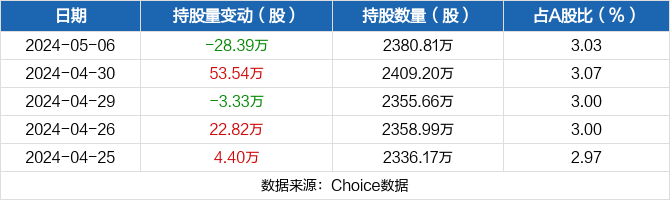 近五日持股量数据