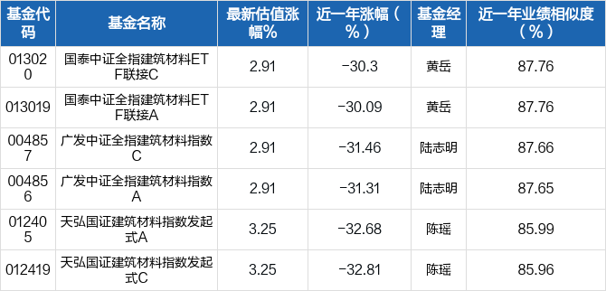 今日(2024-01-25)水泥建材板块涨幅居前,盘中涨幅超3%,达到4.12%。 受此影响,水泥建材主题基金表现突出,主要基金如下: 数据来源:东方财富Choice数据业绩相似度根据基金与主题历史收益率相似度以及历史持仓数据筛选得出,不代表基金当前的实际持仓,不构成投资建议。 免责声明:本文基于大数据生产,仅供参考,不构成任何投资建议,据此操作风险自担。 |