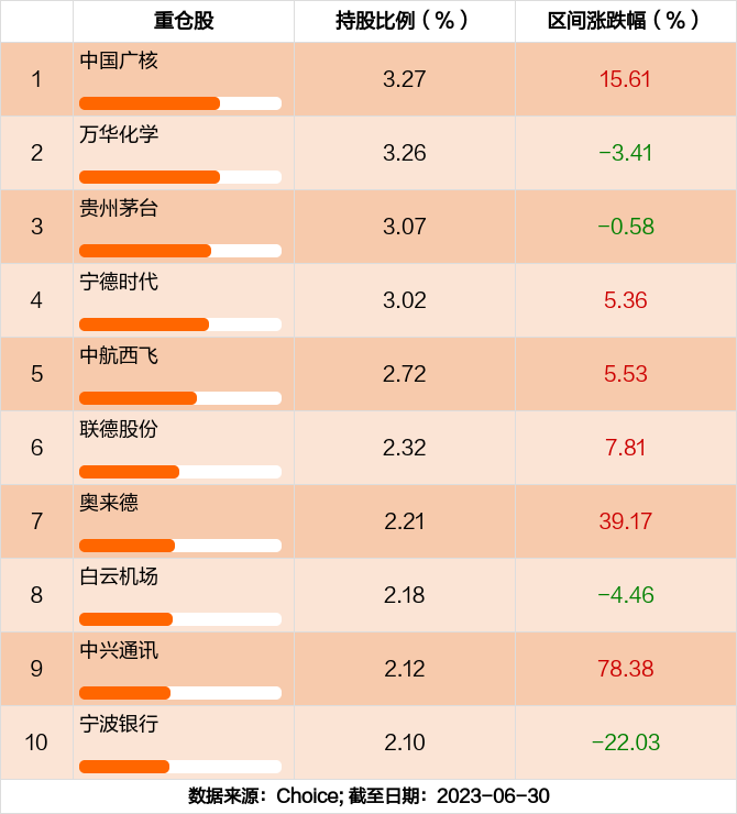 2023年度,截止至6月30日,国投瑞银招财混合基金收益4.20%,同期沪深300收益-0.75%,同类排名553/2265。 基金年度回报 ![]() ![]() 前十大重仓股 国投瑞银招财混合前十大重仓股分别是中国广核,万华化学,贵州茅台,宁德时代,中航西飞,联德股份,奥来德,白云机场,中兴通讯,宁波银行,前十大重仓股合计持股占总持仓比例26.27%。 国投瑞银招财混合前十大重仓股 ![]() “腰部”持仓 根据国投瑞银招财混合2023年半年报,该基金持仓比例排名11到20个股依次为:美的集团,人福医药,三环集团,迪安诊断,特宝生物,健康元,海天精工,中材国际,三一重工,锐科激光。 国投瑞银招财混合隐形重仓股 ![]() 加仓前十大个股 本期基金累计买入金额最高的前十大个股分别是美的集团,三环集团,中国广核,中兴通讯,人福医药,长江电力,陕西煤业,宁德时代,万华化学,宁波银行。 国投瑞银招财混合加仓前十大个股 ![]() 减仓前十大个股 本期基金累计卖出金额最高的前十大个股分别是海康威视,东方财富,沃特股份,恒生电子,中国汽研,同花顺,宁波银行,洁美科技,锐科激光,片仔癀。 国投瑞银招财混合减仓前十大个股 ![]() 基金换手率 基金最新换手率为390.89%上一期换手率为485.71%。历史换手率最高为2019年6月30日,高达1850.65%。 基金换手率变化 ![]() 基金持有人结构 根据国投瑞银招财混合2023年半年报,最新持有人户数为5700人,较上期环比增加-10.95%。其中,个人持有者占比100.0%。 基金持有人结构变化 ![]() 免责声明:本文基于大数据生产,仅供参考,不构成任何投资建议,据此操作风险自担。 |
