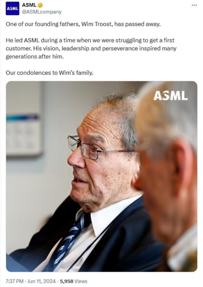 科技圈突传噩耗,阿斯麦创始人维姆·特罗斯特去世! 当地时间6月11日晚间,总部位于荷兰的光刻机巨头阿斯麦(ASML)在社交平台上发文,悼念阿斯麦创始人之一维姆·特罗斯特(WimTroost)。 ![]() 在畅销科技书籍《光刻巨人:ASML崛起之路》中,有一段话这样描述他:“特罗斯特从废料堆中拯救了晶圆步进机。在第二次世界大战后的几十年里,如果说有谁是飞利浦的代表人物,那非他莫属。” 阿斯麦创始人去世 阿斯麦官方账号发文称:“我们的创始之父之一,维姆·特罗斯特去世了。特罗斯特是我们的创始元老之一,也是1987年至1990年期间的CEO,那时ASML正努力争取其第一个客户。退休后,特罗斯特一直是ASML和高科技产业的真正大使。他激励了一代又一代的后人。我们感谢特罗斯特对ASML的DNA和强大公司文化的贡献,他的远见卓识、领导才能和毅力鼓舞了后世多代人。我们向特罗斯特的家人表示哀悼。” 另据媒体报道,维姆·特罗斯特于上周五(6月8日)上午逝世,享年98岁。 1925年,维姆·特罗斯特在荷兰海牙出生。在他10岁的时候,一家人搬到了博姆普杰斯迪克,这是一个位于荷兰西南部泽兰省的一条堤坝上只住着80户人家的小村庄,只有一条街,两个农场。在那里,特罗斯特的父亲和叔叔继承了爷爷的面包店和杂货店。特罗斯特在那里上的高中,然后上了职业学校。1945年9月,年轻的特罗斯特从战争中恢复过来后,父亲拿出家里最后的40美元送他去代尔夫特理工大学学习物理。 在战后重建中,荷兰需要大量年轻的工程师,特罗斯特就是其中之一。飞利浦向特罗斯特发出了几次邀请。他拜访了Natlab,参观了飞利浦的许多部门。特罗斯特最初决定为壳牌工作,因为他担心去飞利浦只能当一个普通员工。但是当他听说这家石油公司可能随时把他派至另一个国家时,他放弃了。最终他加入了飞利浦,年薪1240美元,额外还有50美元的奖金。1967年10月,特罗斯特被任命为飞利浦总工程师和研发部门负责人。 后来,特罗斯特成为飞利浦晶圆步进机的开发人员,也是在飞利浦管理团队会议上唯一一个表示对光刻机有研究兴趣的人。1984年,飞利浦和ASM成立合资企业ASML。1987年,当时摇摇欲坠的ASML群龙无首,刚从飞利浦退休两年的特罗斯特决定出任ASML的CEO,他带领ASML度过了1988年的危机,直至1990年再次退休。 阿斯麦最新动态 阿斯麦是荷兰规模最大的企业,也是欧洲市值最高的科技公司,其在全球范围内有4万名员工,其中2.4万人在荷兰工作。在光刻机领域,阿斯麦不仅是全球最大的制造商,也是唯一的极紫外光刻机供应商。 据路透社最新消息,荷兰埃因霍温市议会周二投票通过了光刻机制造商ASML的扩建计划。这一初步计划由ASML和当地市政府于4月公布,将在埃因霍温北部靠近城市中心相对未开发的地区开发新设施,可容纳多达2万名员工。 据报道,欧洲最大的科技公司阿斯麦需要额外的空间来与半导体行业一起发展,预计半导体行业产值在未来十年将翻一番。今年1月,阿斯麦开始威胁称,如果得不到在荷兰本土发展的保证,将把主要业务转移到荷兰以外。这促使荷兰国家和地区政府在3月份承诺提供27亿美元,以改善埃因霍温地区的交通和住房,该计划被称为“贝多芬项目”。 随着阿斯麦和其他科技行业公司的扩张,埃因霍温大都会区的人口预计将在未来十年从85万增长到100多万。该城市规划的建筑师之一、议员Stijn Steenbakkers表示,保留阿斯麦对荷兰和欧洲至关重要,它将改变埃因霍温。 此前4月22日,阿斯麦宣布,其已与荷兰埃因霍温市签署了一份意向书,在该市北部机场附近区域探索扩建计划,或能容纳2万名新员工。阿斯麦首席财务官Roger Dassen在声明中写道,“正如我们之前所说,阿斯麦倾向于将荷兰的核心业务尽可能靠近公司的现有地点,扩建的埃因霍温基地正是位于公司费尔德霍芬总部附近。” Dassen说道,阿斯麦通常将人才、基础设施、住房,以及投资环境视为投资的先决条件。他还提到,荷兰政府最近宣布的措施也起到了帮助作用。 而在此之前,荷兰政府和阿斯麦之间的关系一度非常紧张。去年11月,荷兰极右翼政党自由党在议会选举中获胜,并宣称将推进反移民、限制外国留学生数量等政策,给阿斯麦带来巨大招工和用工压力。之后有消息称,阿斯麦曾向荷兰政府提出了向其他地方扩张或迁移的意向,法国是选择之一。阿斯麦首席执行官温宁克(Peter Wennink)也在一次会议中提到,如果在荷兰找不到熟练的外国劳工,就会去其他可以发展的地方。 |