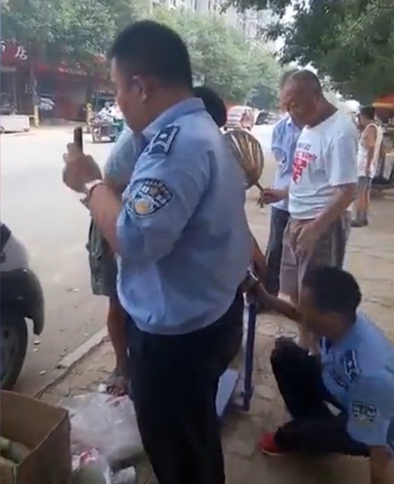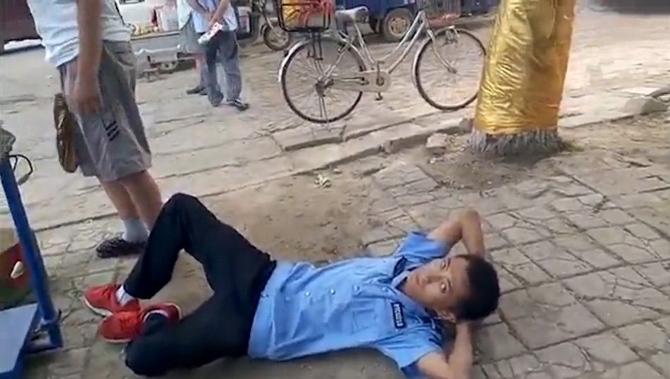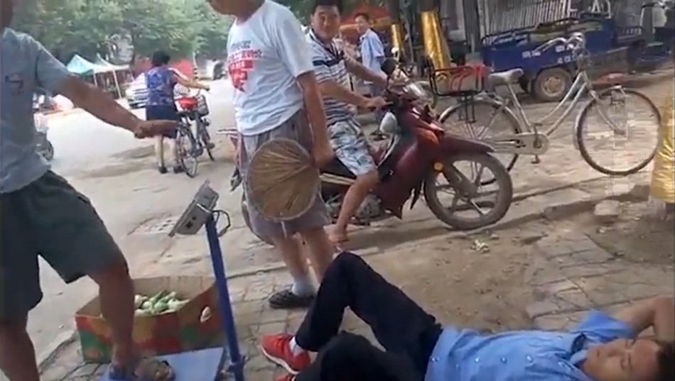 与摊贩没有任何肢体接触,执法的城管人员突然倒地,向同伴求救大呼“报警”。8月17日开始,这段视频热传微博。18日,河北衡水市饶阳县城管综合执法大队办公室负责人告诉记者,涉事城管队员系临时工,目前已被辞退。 ![]() | |