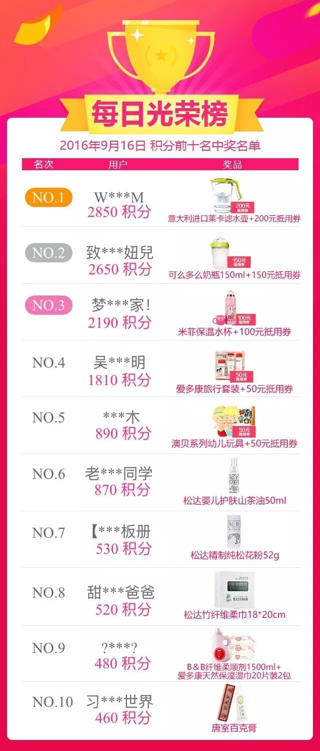 症状三:孤单,舍不得离开父母 对父母有依赖感的人,离开家人之后,会产生分离焦虑情绪,这一点在儿童中最为常见,而一些成年人也存在分离焦虑,尤其在大家庭里长大的人,兄弟姐妹多,过年热热闹闹,一上班就觉得冷清,还有家在外地的人,过年与父母、亲友团聚,年后独自一人回到工作的城市,也会产生孤单的感觉。 专家建议:这个时候,可以多给家里人打电话,一来安慰家人,也能打发自己心理上的孤单;此外,多与朋友、同事出去走走、聚聚,不仅能排遣孤独,还能增进友情。 专家建议:不愿意面对压力、趋利避害,是人的本性,贪图舒适和放松也不是什么罪过。 大家可以根据专家建议然后综合下自己的情况,甩掉节后综合症!接下来我们来看看昨天的光荣榜吧! 9.16.光荣榜 | |