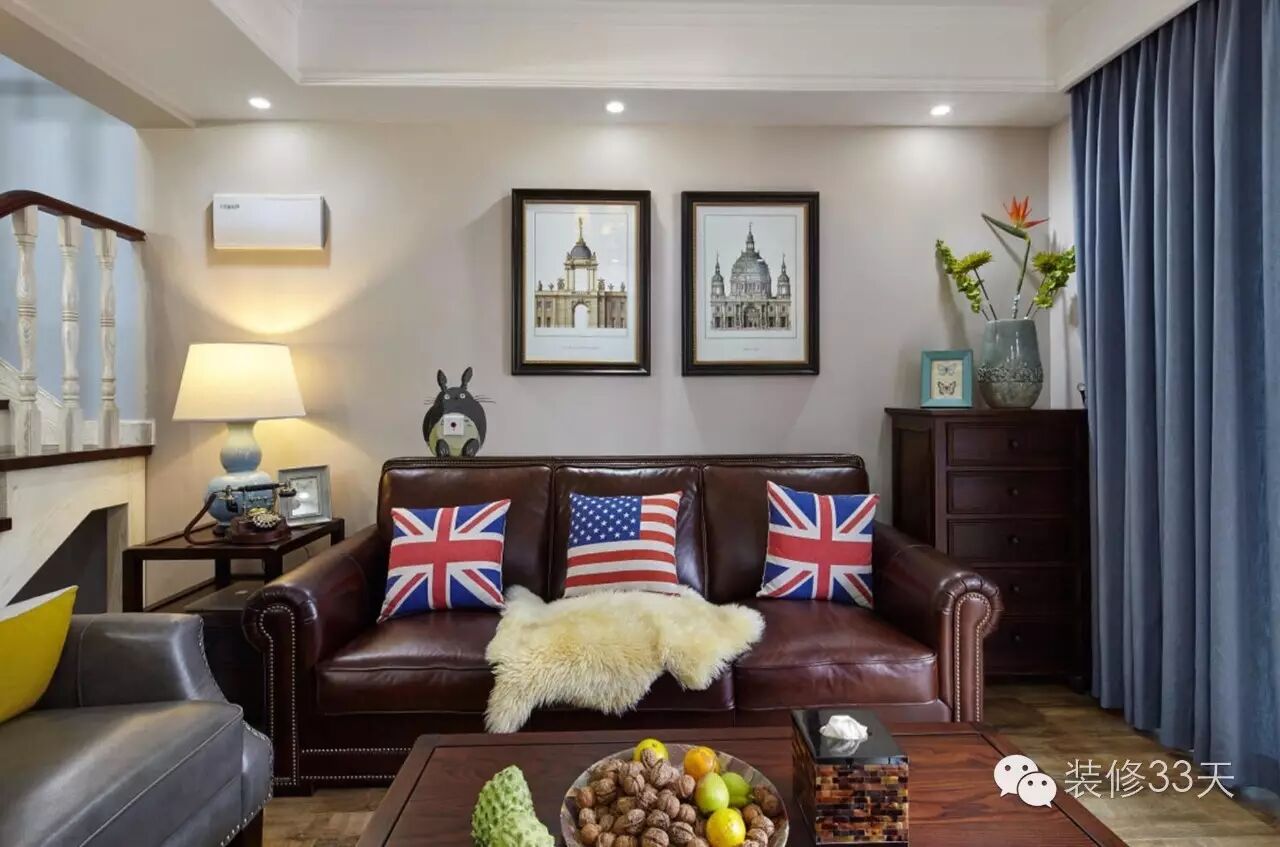 ▲ 进门玄关区,仿古花砖铺地,一整排实木鞋柜收纳能力强大,皮质的换鞋凳也具备一定收纳功能,穿衣镜加衣钩,各种功能齐全 ▲ 客厅墙面是奶咖色,配上美式的家具,整体温馨舒适有调调 ▲ 复古铆钉皮沙发配上英美国旗图案的抱枕,客厅空间紧凑而美好 ▲ 电视背景对称设计,隐藏了老人房的入室房门,功能性和美观性得到平衡 ▲ 餐厅设计成卡座,一幅可爱的手绘图案 ▲ 厨房用彩色的小砖随机拼贴,淡淡的彩色和白色的橱柜相互衬托 ▲ 老人房简单温馨 ▲ 沿着楼梯拾级而上 ▲ 一幅手绘田园风景让凹凸的墙面更有意境 ▲ 书房适合静静的看书,咖色的家具沉稳得恰到好处 ▲ 主卧在奶咖的基调上配了一些芥末绿,气氛静瑟温馨 ▲ 阳台一角设计的梳妆台 ▲ 卫生间蓝色和浅咖色的瓷砖搭配铺贴,自然混搭 ▲ 平面布置图 设计 | 迪尚设计 张君(深圳) 欢迎业主、设计师、装修公司投稿照片 公众号商务合作:king194316 | |