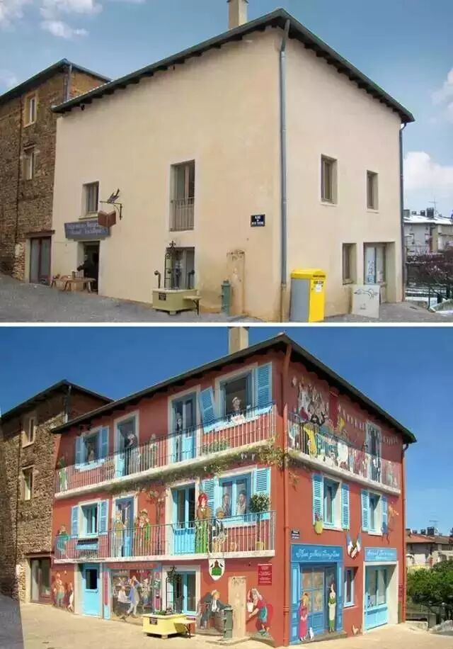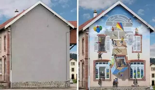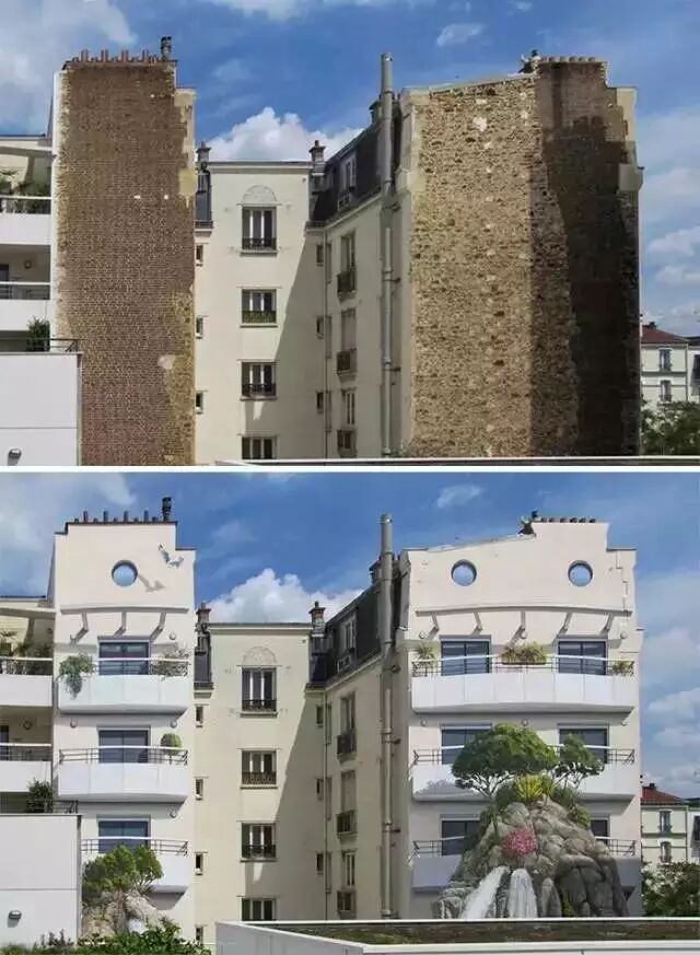 本来小编只是出去约个会 回到家那条巷子就发现找不到路了 原来它是酱紫的 ▼ 我回来就变成了酱紫 ▼ 竟然 差点让我怀疑走错路 (才怪咧) 社长并没有时间去约会 不过话说偷偷给房子整容的 是法国一个名为Patrick Commecy的街头艺术家 他们的团队为了将城市从无趣中解救出来 而创作了这些奇妙的“涂鸦” ▼ 整了容之后的房子 整个都变了样 真的会给人一种时空错觉感 走在城市的大街小巷 随处上演着引人遐想的故事 脑洞都会跟着乱飞 荧幕上经典的接吻镜头也被搬到墙上 分分钟虐杀单身狗的节奏 走在路上就像参观画廊一样 却更加富有生气和回忆 城市里原本毫无特色的空白处 在他们的魔法下变得生机勃勃 这样的艺术家 多来几个才好 因为我家房子也想整容 你们啥时候有空啊 图文来源:Artist(id:artist212) | |