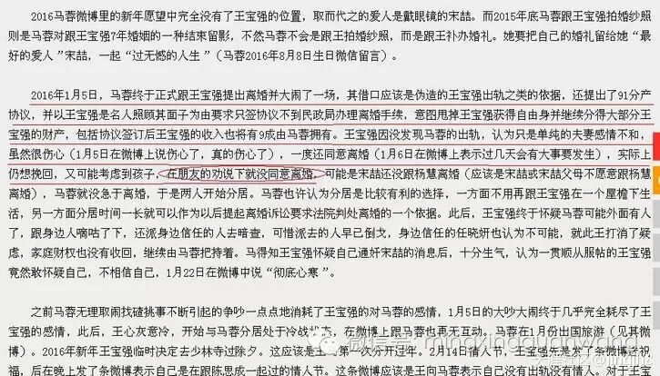 马蓉做为王宝强的妻子,在家什么也不用做,只做了一件事买奢侈品,宝强靠自己打拼,短短几年积攒近亿家产,把妻子养成贵妇人,原本购买奢侈品还能满足马蓉的虚荣心,但随着时间的迁移,奢侈品对她没有任何兴趣,奢侈品改成了情人,人的欲望是不断扩张的,就是不知道什么叫满足 表面上俩人看着十分恩爱,但背地马蓉不断转移财产,出轨事件曝光后,马蓉宋喆成了过街老鼠?并不是这样的。 马蓉在此次离婚事件中,将获得5000万以上的财产,再加上转移的,够她花一辈子的,或许只有钱对马蓉来说才是最实在的,5000万,这次事件中马蓉才是最大的人生赢家。 尽管老婆给自己带了绿帽子,但他赢得只是13亿人的同情,范冰冰都没有那么高的人气,可以说,宝强下一个电影一定会大卖。 最惨的是宋喆,老婆和自己离婚,有没有钱真正成了过街老鼠,谁见了都要说几句或许整容对宋喆来说才是最好的出路。 王宝强离婚事件发展到如今,在各位神通广大的网友们的深扒下事情的脉络已经渐渐明朗,相信各位网友也有了自己对这事件的认知,另外,天涯上有两篇文章写的很靠谱,把王马两人的感情变化过程及心境的变化描述的比较透彻,我认为已经有七八分接近事实了,一篇是 蒙山人2016 转载的“洞若观火王宝强马蓉离婚案:一位四十岁的大叔的真知灼见”,还有一篇是 讨蓉灭喆 网友写的“惊爆:马蓉是故意留下手机让王宝强知道自己已经跟宋喆出轨的”。前面这篇文章详细剖析了出轨发生及事情爆发后当事人的心理动态,而讨蓉灭喆 网友写的是对该事情发展的细节及过程的分析,我认为2016年以前的分析非常合理,但2016年1月以后的分析还是有许多疑问的,对这些疑问我还是有不同的看法,也就是我认为马蓉手上有最大一张牌的依据。 在说马蓉手上的王牌之前,我先说一下我的判断,那就是王宝强在2016年4月24日之前是不确认马宋有出轨事实的,最起码没有马宋出轨的证据,但已经有很深的怀疑了(请看图)。 然后我罗列了一下2016年1月之后一些细节上比较有疑问的地方: 疑问一:5月份以前宝亿嵘公司的股权大部分在马蓉手里,加上1月份两个人闹翻,马蓉凭什么会心甘情愿的交出股权? 疑问二:马蓉在明知道王宝强已经有所怀疑的情况下在微博上发了一张“等会吃什么”的漫画图,马蓉为什么这么明目张胆?难道真认为王宝强是“傻根”? 疑问三:马蓉与宋喆2016年6月看房(这张图网上有说假的,但经过确认,图片是真的,看房也是确有其事,只是下面的暧昧对话是p上去的,这个网友@高能E姐微博上有说明,大家可以去看一下)也显得很有疑问,是不是有点高调? 疑问四:王宝强发布离婚声明后网友在马蓉微信上指责马蓉转移王宝强财产,马蓉回应“什么叫我拿他的钱?我只是拿回属于我的东西”,马蓉凭什么如此嚣张? 疑问五: 马蓉在6月份看房时候的照片及8月份在美国游玩时候的照片显示已经有了身孕(明显不是王的孩子),她为什么如此大胆?要知道怀孕可不象开房那样难以取证,只要被王宝强知道那么她与人有染的是就会座实,马蓉凭什么如此大胆?(看图) 疑问六:王宝强在发布离婚声明后曾经表示过“宁可不要财产也要两个孩子的抚养权”,“一切从头再来”等,显得对追回财产不太抱希望,为什么?难道王宝强真的对自己辛苦挣来的钱那么不看重? 疑问七:王宝强律师张久淮在记者问他案情进展情况时曾表示“不能细说,案情很棘手,还是依靠法律,相信法律”,作为比较知名的律师来说,在舆论一边倒,出轨证据确凿,转移资产的证据应该也不难找的情况下为什么说案情棘手?不是应该手到擒来那样简单吗? 疑问八:在现如今的情况下,马蓉的微博小号@天涯霹雳兔(这个号我认为不纯粹是蹭热度的营销号,微博上的有些图片不是外人可以弄到的,比如说马蓉卧室的照片等,不是马蓉本人的话也应该是她的亲近之人在操作,这个小号发布的博文“我拿什么拯救”金耳朵兔子还点赞了)还一直在说什么等5个月后大家就会明白真相什么的,比较死硬,难道马蓉手里还有王宝强的黑料?王宝强先出轨的照片?家暴照片?还是其他?如果仅仅是家暴或是王的欢场照片的话对现在局势影响应该不大,那么马蓉手里到底还有什么能最大限度挽回局势的东西呢? 重点应该包括:一、王马两人协议分手(非离婚,没去民政局办理,应该也没有经过公证),以后各过各的,互不干涉。二、两人共有财产91分,王因为事业需要取得宝亿嵘公司股份,其他家庭存款及大部分不动产归马蓉。 协议内容应该还有其他一些,但现在能挽回局势的重点就是上面两条,协议签订后马蓉开始交出了公司股权并初步转移财产,与宋喆的交往也相对大胆起来,开始为与宋喆同居做准备(看房买房),有了身孕也就正常了,因为在马蓉的认知里与王宝强实际上已经离婚,王宝强已经不能管她了,她转移的财产也是属于分割给她的一部分,所以说是拿回属于她自己的,而王宝强应该是在8月12日左右有了新的发现才明白自己上当受骗的,可能是掌握了马蓉在协议签订之前就已经出轨宋喆的证据,也极有可能是发现马蓉怀孕才醒悟过来整个事情的真相,在愤怒之下打电话找马蓉质问,马蓉拒不接听,王宝强遂找律师或朋友起草离婚声明,等到14日凌晨马蓉无回应之后愤而发声明!!! 不过目前仍旧没有得到任何消息,小编想说,等着下次开庭吧~ | |