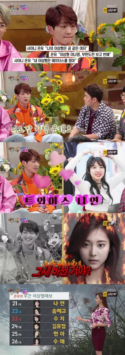 SHINee成员温流在日前播出的《Happy Together3》中,公开了自己对理想型的看法。 20日播出的KBS《Happy Together3》,邀请到SHINee成员们担任来宾。其中队长温流被问到:今天的理想型是谁呢?温流回答:今天是Twice的娜琏。刘在石惊讶的说:事前采访的时候,不是Twice的子瑜吗,这么快就变心了吗? 温流则说:我的理想型是每天都会改变的,快到我都无法记住的程度,让大家都感到惊讶。而一旁的SHINee成员则说:与其女友总是换,还不如理想型经常换阿。 韩综 爱追星,更爱追综艺 长按二维码 关注我们 每天都更开心一点 | |