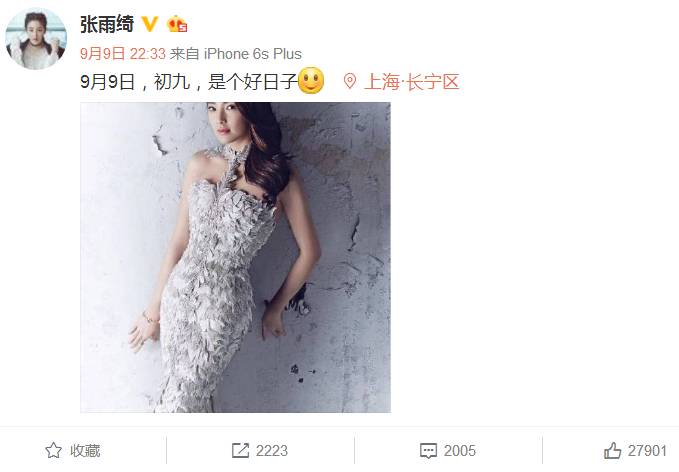 10月26日,张雨绮工作室在微博上宣布张雨绮已经结婚了,引来一阵轰动,并附文“原本没有向全世界交代人生方向的计划,但既然已经“被曝光”,那索性直接走在“新闻”的前面。正式公布一下:贝拉公主张雨绮小姐已经找到了她的野兽王子,两个单身的人相识十天相恋,相识七十天结婚,这是一段恰到好处的相遇,相信爱的人会一直得到命运的眷顾。谢谢大家的关心和祝福,唯愿安安静静的携手,平平淡淡的生活。”据说这一天正好是前夫王全安的生日,这一天公开婚讯,无疑是在给前夫狠狠打脸......