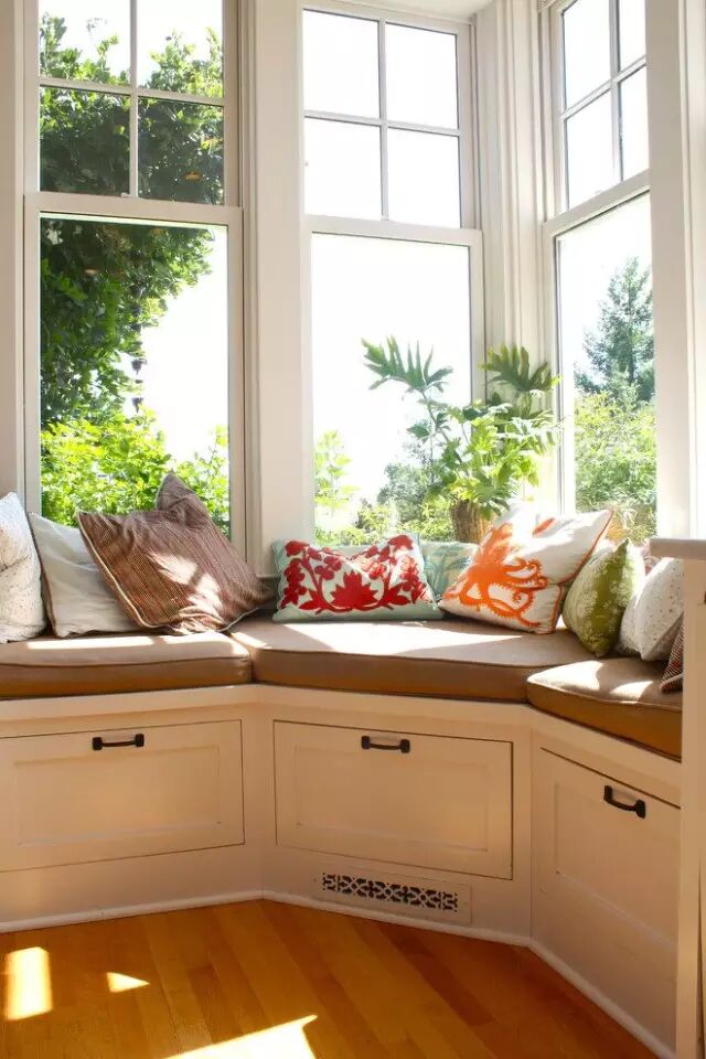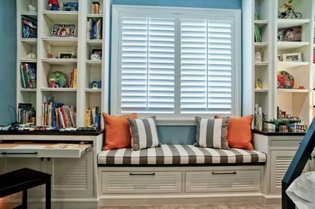 1、飘窗柜+储物柜 飘窗好看不实用?如果家里的老人觉得飘窗的存在是一种浪费的话,可以给老人家看看高颜值的飘窗储物柜设计是如何满足家居储物收纳需求的,不管是开放的柜体还是闭合的柜体,只要设计的好,不光让飘窗颜值加分,家居收纳也不再有烦恼。 2、飘窗柜+书房 如果小伙伴是一个需要经常在家工作的人,那么飘窗书台就再适合不过,不仅让小户型无法设书房的小伙伴解决了空间的需要,而且累了可以就地躺下,喝喝茶,听听音乐,是不是很棒呢。当然了也要提醒一下,如果需要用到电脑工作或者阳光强烈的话,拉上窗帘保护视力哦。 3、飘窗+榻榻米 茶余饭后,和家人一起窝在飘窗上晒晒太阳,吹吹风,或者约上三五个好友,一起掼掼蛋,玩玩乐器,又或者一个人宅在家里,就着温暖的阳光,一壶好茶,一本好书,就是一段惬意的时光。 4、飘窗柜+衣柜 将空间的设计做到了无懈可击。换上美美的衣裳,给自己一个完美的笑容,拉开窗帘,金子般的阳光洒落下来,又是一个明朗的好天气,又是一天的好心情。 | |