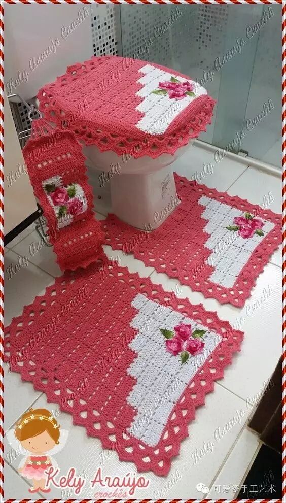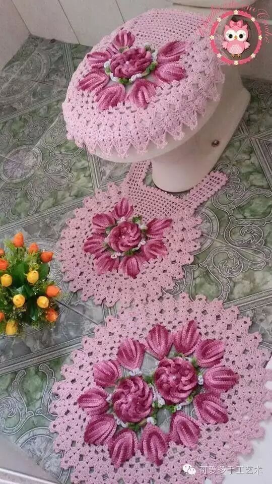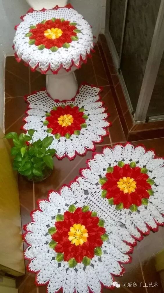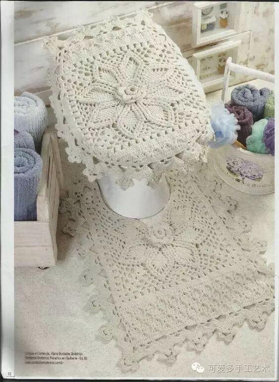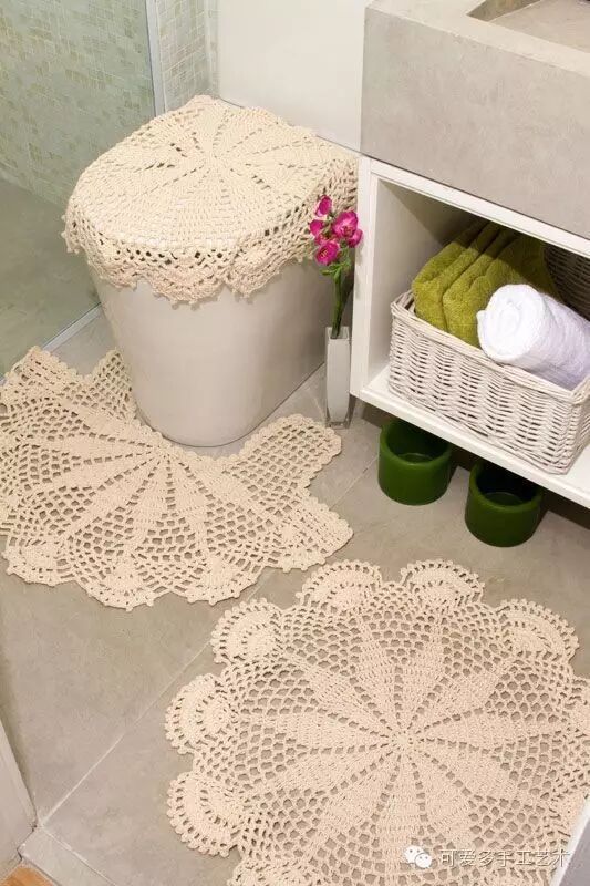 每天为你更新不同的手工艺术,编织,刺绣,串珠,纸艺,布艺,皮艺,剪纸,摄影美图,书画精品,粘土软陶,国内外手工艺术等精彩文章,在这里愿与您共同分享,个人微信号/QQ号:88461358 天气冷时,是不是到洗手间时感觉特别的阴冷? 铺上这些亲手钩的卫浴套件, 整个洗手间都充满了温暖的气息, 心情也变得美起来! | |
