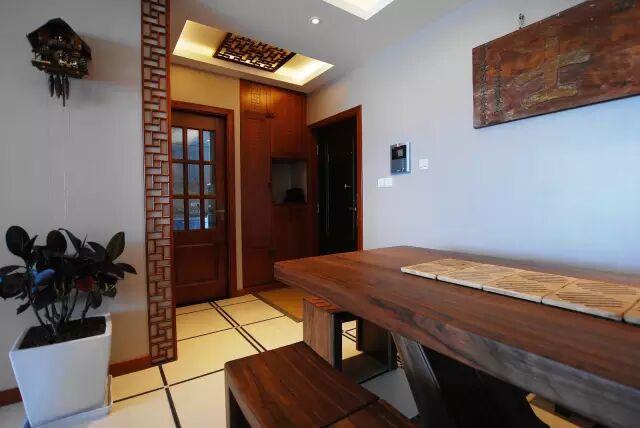 ▲ 既然是新中式,那么中式与新式如何很好地融合,是一个难点。设计师将中式实木家具,搭配欧式碎花墙纸,效果意外地好。 ▲ 沙发虽然是木制的,但是靠背和垫子都是与墙纸一致的田园碎花款,清新自然而不古板。 ▲ 地砖的选择也是尽量融合了现代前卫的元素,黑色的线条感突破了方块的单调感。 ▲ 客厅与餐厅巧妙地融合,隔断墙的红色木制镂空包边、吊灯,都是中式元素的代表。 ▲ 进门玄关的吊灯、鞋柜、墙体包边,都是中式风格的典型元素。 ▲ 木制镂空包边特写,是不是别有风味? ▲ 餐厅背景墙挂着的写着“进士”的横板,更是有着难以忽视的古朴之风。 ▲ 餐桌椅、餐边柜虽然是复古实木打造的,但在造型上大方、古拙的造型,意外地具有现代感。 ▲ 客厅与阳台的隔断,采用实木包边,同时有木制镂空的特色。 ▲ 但阳台以地砖抬高,铺设实木地板,陪日式靠背椅和茶几,营造出日式榻榻米的格局,无疑是西式的。 ▲ 厨房的推门,红色镂空的设计,隐含的中国风。 ▲ 浴室也是典型的干湿分离。不过台盆柜、门,都是中国红的。 ▲ 次卧的亮点,在于阳台的改造,将这个角落充分发展为一个小型书桌。 ▲ 几块简单的木板,就着窗户的角落,便形成了一个小型的书桌。 ▲ 床、背景墙纸、台灯,都具有一些西式的风味。 ▲ 这个床位的柜子,倒是中式家具的老家伙,有种呆萌的感脚。 如果您觉得这篇文章有用,请分享给更多的朋友!~ 装修范:为你的新房装修,提供实用参考 广告合作QQ:996813970 有范君提醒:点击文章末尾“阅读原文”免费领取四份装修设计与报价 | |