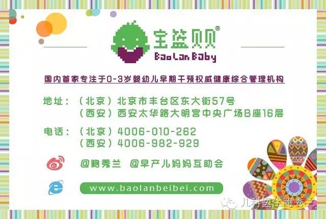 “为了让早产宝宝们顺利成长及早追上足月儿,对早产儿定期进行发育检查十分必要。” 早产儿随访监测包括: 神经运动系统评估: 营养、体格发育评估: 视觉评估、听力筛查: 精神、语言、社会情绪和行为发育评估: | |