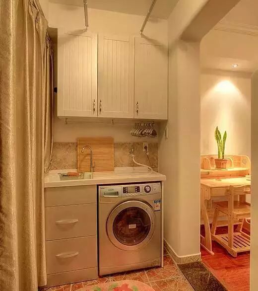 最多最全的diy小技巧,每天推送,只要你点击上面蓝字“diy手工大全”就可以关注,完全免费哦! 卫生间放不下洗衣机?看看别人家怎么做!洗衣机放在在卫生间的角落里,这样既不影响实用选择合适的洗衣机又能很美观。 不少挨着客厅的阳台,都还担负着洗衣晾晒的功能,可是收拾起来的时候,就比较麻烦。其实,只要规划得当,划分出洗衣区、晾衣区、熨衣区;配合利用功能强大的小道具,我们就能一步到位地拥有“一体化”的工作区域。 很多朋友都说家里面积小洗衣机没地放,其实想要一个美丽家又兼有实用的功能,我们可以这样做: | |