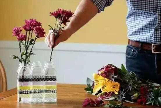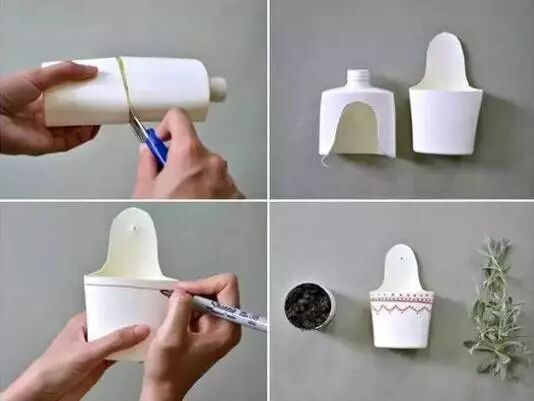 导读 喝完饮料的塑料瓶你都随手丢掉啦?亏大啦! 「花草篇 pinpinlife 」 花 盆 ▼朋友送的花束要怎么在家里养?有塑料瓶就够啦~ 1.将六个塑料瓶用线固定住,再用粘胶粘牢 2.倒入水就可以将鲜花放进去了~ 还能体验插花的乐趣~ ▼花草比较多的话还可以做成下面这样的花盆 1.准备麻线、剪刀、胶水、刷子、塑料瓶 2.将大号的塑料瓶剪开,装上土壤和植物,为了让花盆更好看,可以在塑料瓶外缠绕一层麻线 当当当~成品就是这样的啦~比外面买的花盆还好看~ 放在室外的效果是这样的~ ▼装沐浴露的塑料瓶子也可以用来养花哦~ 拿一根绳子串在一起,好看的都不想出门了~ 花 洒 ▼给草地或者花园浇水时,可以在泵头上套一个钻了孔的塑料瓶,立马变成了高级的喷水器~ 「收纳篇 pinpinlife 」 牙刷收纳 ▼家里的牙刷牙膏一般就放在漱口碗里,但其实这样很不卫生,容易滋生细菌,用塑料瓶做一个牙刷牙膏收纳器,方便好用~ ▼把塑料瓶的盖子粘在墙上,也可以用来放牙刷~ ▼不止牙刷,家里的化妆品,也可以放在塑料瓶里,不过要记得用熨斗将塑料瓶的切口处烫一下,防止扎手~ 衣物收纳 ▼大号塑料瓶固定在墙上,可以放一下小件衣物,方便好拿~ ▼鞋子太多怎么办?将大号塑料瓶剪开,就能装鞋子了~几个塑料瓶就将柜子的收纳能力提高了好几倍! ▼超大号的塑料瓶收藏能力更惊人~ 文具收纳 ▼将装牛奶的塑料瓶割开,涂上颜料稍作装饰,就变成了文具收纳盒~ ▼将装洗发水的瓶子剪开,贴上可爱的装饰物,就成了萌系文具盒啦~小孩子一定喜欢! 书籍收纳 ▼将大号牛奶罐剪开并排放在一起,用钉子固定住就成了实用的书架~ 零食收纳 ▼吃不完的小蛋糕,可以用半个塑料瓶盖住,就没那么容易坏~ ▼糖果之类的小零食可以像这样挂在墙上~一些五金件也可以这样放哦~ ▼收集若干个可乐瓶的瓶尾,用胶水粘在一起,就成了零食盒啦~放上各类糖果、水果、果仁,摆在客厅一定倍有面子~ 首饰收纳 ▼将瓶尾剪得浅一点就是首饰收纳盒啦,放耳环、手链、戒指都非常方便~ ▼不想立起来的话,也可以做成这样一层型的,适合放一些小东西~ 零钱包 ▼剪下两个塑料瓶的底部,用拉链连接上,就变成了一个零钱包,实用又好看~ ▼如果选择可乐瓶的底部的话,零钱袋就是这样的啦~ 调料瓶 1.用打火机加热瓶盖,不用太久,瓶盖表面变软就可以 2.用针从戳瓶盖,因为瓶盖加热后变软了,所以会变形成尖状,用剪刀将顶部剪掉 3.再套上瓶身,就可以用做调料品了。可以装沙拉酱、番茄酱、奶油,摆盘一定好看~用来装酱油、醋也很合适,再用不用担心加调料的时候一下子放多了~ 毛线收纳 ▼打毛线的时候最怕毛线缠在一起,将毛线放在塑料瓶里,线头从瓶口穿出来,就没有这个烦恼啦~ 提 篮 ▼大瓶矿泉水的瓶子可以做成很好的收纳盒哦~将塑料瓶从头部剪开,贴一层胶带防止划伤,再在两侧戳上小孔,穿上绳子,一个小提篮就完成啦~ 「装饰篇 pinpinlife 」 灯具 ▼将大号塑料瓶剪开,去掉头部,在尾部穿一个三厘米左右的孔 ▼将小灯泡放进塑料瓶里,插头从小孔里穿出来,外面套上一层白色的卡纸 完成后是这样的~是不是看起来很高级~ ▼塑料瓶也可以做吊灯哦,取塑料瓶的头部,涂上红色和黑色的颜料,再装上灯泡就完成啦~ ▼想要灯具更有质感,还可以在塑料灯罩外面缠一圈麻绳,做好后和在家居店里买的一样~ 烛 台 ▼将牛奶瓶剪成一个个的小圆圈,用大头钉固定在一起,再用钳子将大头钉的尖头部分折弯,简单几步,塑料瓶就变成了卧室装饰品~ ▼剩下的瓶子上半部分还可以用来制作烛台哦~将塑料瓶按照如图的形状剪开,将剪好的塑料片向内翻折并固定住,一个美丽的小烛台就完成啦~ 将烛台摆在餐桌上,享受下烛光晚餐的浪漫吧~ 沙 发 ▼塑料瓶还可以变成沙发!将若干个大小相同的大号塑料瓶头尾相间摆在一起,用胶带粘牢,再在一侧铺上泡沫或者软布,最后再套上一个沙发套就完成啦~ 小编有话说以下是小编为大家挑选的2016年最火的微信,不同类型,不同内容,希望给你的生活添加别样的风采! ★长按二维码,选择“识别图中二维码”进行关注★ ▼ ▼ ▼ 国学艺术精粹 简介: 致力于推动传统文化的传承和国学精粹的传播.内容涉及国学经典、修身养性、健康养生、家庭教育、心灵禅语等.这是一个有灵魂的平台,与百万读者共同传承文化精粹! 免费订阅哦~ ◆◆◆◆◆◆◆◆◆◆◆◆◆◆◆◆◆◆◆◆◆◆◆◆◆◆◆◆◆◆◆◆◆ 排毒养颜秘籍 简介:教你防止变老,女人老了很难看,马上关注教你几招变年轻!!免费订阅哦~ ◆◆◆◆◆◆◆◆◆◆◆◆◆◆◆◆◆◆◆◆◆◆◆◆◆◆◆◆◆◆◆◆◆ 免费财运算命 简介:每天学点财运风水学;用老祖宗的智慧来解密、改运风水 、生肖运程。免费订阅哦~ ◆◆◆◆◆◆◆◆◆◆◆◆◆◆◆◆◆◆◆◆◆◆◆◆◆◆◆◆◆◆◆◆◆ 教你看破人心 简介: 教你轻松搞定他,让他死心塌地的爱着你.想要幸福的女人关注我吧!~免费订阅哦~~ ◆◆◆◆◆◆◆◆◆◆◆◆◆◆◆◆◆◆◆◆◆◆◆◆◆◆◆◆◆◆◆◆◆ 居家小管家 简介: 每天为您更新最新的生活小常识,方便您的生活,学习居家小妙招。 免费订阅哦~ ◆◆◆◆◆◆◆◆◆◆◆◆◆◆◆◆◆◆◆◆◆◆◆◆◆◆◆◆◆◆◆◆◆ 时尚女装搭配 简介: 还在愁怎么搭配么?马上关注,每天分享穿衣搭配技巧,教你穿出一个时尚范