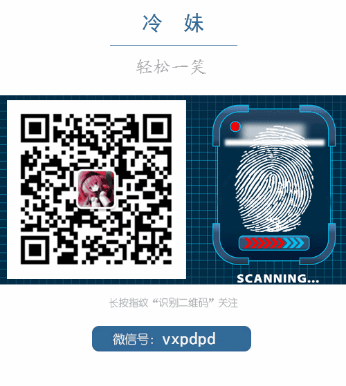 冷妹,热心肠,冷幽默,有内涵。每天一个冷笑话,从此让你喜欢我! 微信号:vxpdpd