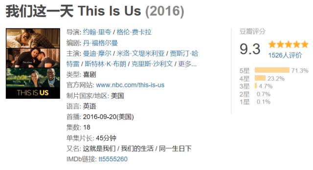 除了广受好评的《西部世界》,最近还有一部评分神高的美剧你绝对不容错过! 豆友们纷纷给出了这样的评价! 才出两集,豆瓣评分就飙到了9.3。 今天色姐推荐的就是这部《我们这一天》。 故事讲述了一群不同的人,他们的共同点就是同一天生日。 在36岁生日的这一天,他们却各有各的烦恼和遭遇。 首先,一对正甜蜜的小夫妻, 妻子挺着大肚子,给丈夫庆祝36岁生日。 为了他们的生日传统,她挺着大肚子跳热舞。简直暖哭了。 妻子怀的是三胞胎,结果很遗憾,不是所有宝宝都平安出世。 另一对主角,是一对兄妹,两人同一天生日,也是36岁。 哥哥是个当红演员, 但是连他自己都不认同自己正在演的垃圾情景喜剧, 这里似乎也在暗讽我们这个娱乐至上的时代。 终于有一次他忍不住了,在现场爆发了,狂骂了编剧导演和片场的观众。 他面临经纪公司和电视台的双重压力, 他的演艺事业即将断送, 坚持自己? 还是回去继续演垃圾? 他不想再做一个任人摆弄的木偶,拍愚蠢的情景喜剧,脱衣服露肉,取悦所有人。 他的妹妹也有自己的苦恼,似乎她的烦恼更大。 妹妹是个胖子,她的体重使她永远没有自信, 她参与了胖子互助会, 下定决心减轻体重,拯救自己糟糕的人生。 而在互助会上,她遇到了另一个有趣的胖子, 两人彼此欣赏,十分契合, 但是正如她自己所说,她现在不能接受自己跟胖子谈恋爱。 36岁的兄妹二人,都希望自己的人生有所改变。 还有一对黑人夫妻, 男人事业很成功,他也刚好度过36岁的生日,是公司的合伙人。 他们有两个很可爱的女儿。 看上去这是个幸福的家庭。 可是男人找到了自己的生父,那个从刚出生就抛弃了自己的人。 而他的生活,因为生父的融入, 又发生了变化。 这三个故事,看似是四个同一天生日的人的故事, 其实他们之间存在着亲密的联系。 如果你以为这只是一部铺满生活琐碎的家庭片那你就错了!要知道这部剧被称作“情景喜剧版的《迷失》”! 编剧已经在前两集都密密麻麻铺好了细节,悬疑感丛生。 如果你想在第一集结尾前就猜出编剧的心思,那色姐只有一个忠告:注意细节,包括每段背景音乐、主人公的生存环境!千万记得开脑洞! 而在第一集的最后,有个大惊喜等着观众! 编剧把他们的关系一笔带出, 到底他们有什么样的关系?这里不剧透,不过看过韩剧《信号》的朋友应该很会理解这里的时空。(当然这部剧并没有任何穿越元素) 相信所有观众都会震惊,恍然大悟,直呼原来如此。 然后乖乖地献上自己的膝盖。 从前两集的路数来看,本剧很温馨,既有笑点又有泪点, 难得看到这么温馨的美剧! 不靠犯罪推理、也没有重口味荤段子, 没有大咖撑腰,没有强大IP, 也没有高级的概念、宏大的构思, 这还是我们认识的美剧吗? 的确,这部剧跟我们印象中的美剧不大像! 但是,《我们这一天》就是这么清新脱俗!跟外面的妖艳贱货一点都不一样。 仅靠平凡的生活、精巧的构思、完美的细节就足以构成一部神剧。 之前英剧美剧纷纷刮起一阵丧剧风, 比如《马男波杰克》,《百年酒馆》,《伦敦生活》, 这部剧总算可以带来些久违的温暖和欣慰。 讲真,我们都是平凡的人, 我们既没有丧剧中的主角们丧得那么理所当然, 也不像黄暴美剧中的主角们一个个都那么高能, 更多时候,我们都是个经历生活酸甜苦辣、悲欢离合的普通人。 而这部剧,展现的就是普通人的悲欢。 虽然第一集就鸡汤满满,金句频出, 但是从弹幕判断,普遍认为,这碗鸡汤太好喝不少人选择先干为净, 因为这部剧的内核实在太温暖,让人无法抗拒。 相信你看了也会有这样的觉悟哒, 毕竟冬天快来了,喝点鸡汤补一补也未尝不可。 想看的,A站。 | |