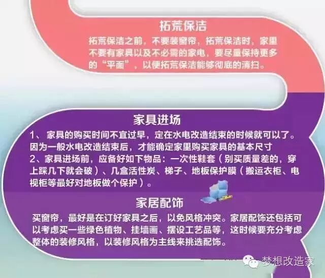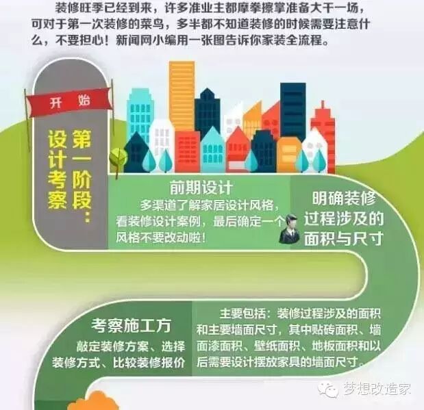 如果在装修前你还没弄清家装的整个流程,那么你务必是要吃亏的。从设计到施工,再到安装、软装,这一系列的过程都是循序渐进展开的,装修小白们千万不要一张白纸随意涂鸦,心中有数才会胸有成竹呀。下面介绍的这张图,可以教会你看懂家装全流程,赶紧收入装修宝典中吧!