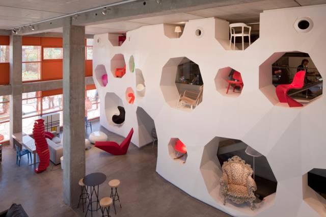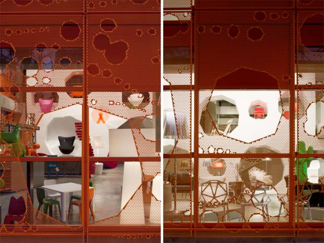巴黎建筑事务所jakob + macfarlane architects(dominique jakob, brendan macfarlane)的新作品“橙色方体”,这座商务文化综合体位于法国里昂。该项目作为一项城市规划方案,丰富了里昂码头空间。这个五层的立方体反映了sa?ne河河水的流动,并探讨了建筑的减法设计和建筑缺口对空间质量的影响。 建筑首层层高是普通层的两倍,建筑师在此设置了一个设计展厅。其中展厅的室内设计也是由 jacob + macfarlane 建筑事务所操刀设计的,主要风格延续了“橙色方体”方案的建筑语言。设计师将外立面的处理引用到室内,并将其三维化,设计了一个L形墙,包裹了整个空间。墙面上打了60个圆洞用来陈列家具作品,这种通透的处理也成为首层循环流通的主要方式。 更多相关热点阅读▼ ?有没有那么一张床,让你在户外肆无忌惮【A963第913期】 ?大师手泽,授艺传情:梁思成手绘古建图 ?光影的艺术呈现,赋予了建筑生命。。 ?十几年的功夫,它竟然完成了一个巨大的“胃”…… ?从洛杉矶、雅典、迪拜到俄罗斯,艾特奖全球推广重点历程大回顾 | |