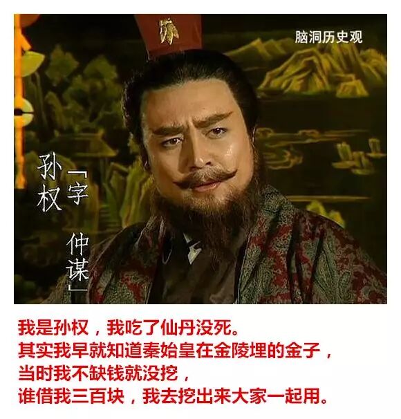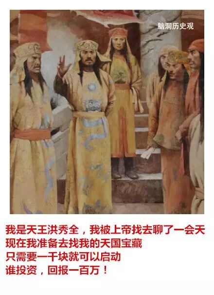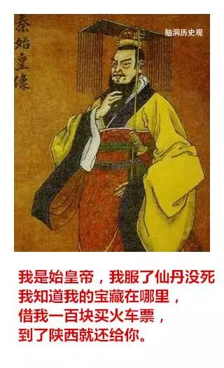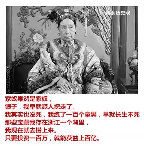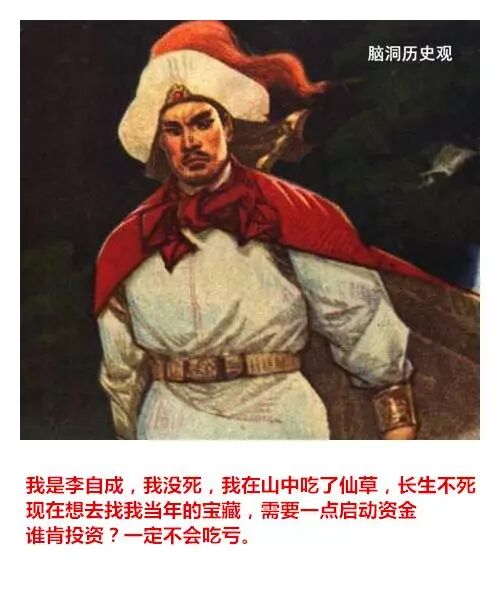 文字版本: 孔子:我是孔丘,我喝了麒麟血,可以长生不死。我现在要办一所孔子学院,谁能赞助我,我愿意分他一杯麒麟血。 秦始皇:我是始皇帝,我服了仙丹没死,我知道我的宝藏在哪里,借我一百块买火车票,到了陕西就还给你。 汉武帝:我是汉武帝,我也吃了仙丹没死,现在我准备打匈奴,需要招兵买马,那个房地产老板肯出资?打下匈奴,分一块地皮给你们搞房地产开发! 王莽:我是王莽,我要穿越到汉朝去。谁借我五百块钱,我一定让你祖先当大官,然后让他在你们家宅基地埋一袋银子。 刘备:我是刘备,我吃了蜀中仙草没死,我在成都有个宝藏,谁借我两千块,挖出来平分。 关羽:我要找我大哥刘备,谁借我二百块打个车?到了地方我大哥一定会加倍奉还。 曹操:我是曹操,他们说挖到我的坟,那是假的。我根本没死,我吃了一座古墓里的仙丹。我有一本盗墓秘诀,五百块卖给有缘人。 孙权:我是孙权,我吃了仙丹没死。其实我早就知道秦始皇在金陵埋的金子,当时我不缺钱就没挖,谁借我三百块,我去挖出来大家一起用。 杨坚:我是杨坚,我其实没死,我把皇位传给儿子,就到日本了。现在我回国,钱被偷了,身上只有一块古玉,作价一千块。便宜卖了。 杨广:我做证,我爹没忽悠。 李世民:我是李世民,我正上朝突然昏倒,醒来就是现在了,没想到世界变化这么大,身上也没有现代人用的钱,只有一幅《兰亭序》,也不知道现在值不值钱,大家看看,随便给点钱,我就卖了。 杨玉环:其实我没死,上吊时有人救了我,把我运到日本,又机缘巧合吃了一粒徐福留下的仙丹,现在我想到长安取回唐玄宗留给我的宝藏,谁肯借我一千块,以后一定定重报,以身相许也不是不可以商量的。 李从珂:我是后唐皇帝李从珂,当年我自焚时,天上的神仙救了我,上天当了一个仙童,因为犯了错,打翻了太上老君的练丹炉,贬下凡间,现在想去找我当年藏起来的传国玉玺,谁借我三百块,买票去洛阳,找到了大家一起发财。 赵匡胤:我是赵匡胤,我其实没死,我掉进时间黑洞了,没想到来到了这里,现在身无分文。当年为了打辽国,我建了一个宝库,谁借我三千块,我去取出来,一定重谢。 成吉思汗:我是天可汗,我在征西域时得到仙药,可以长生不老。但为了让儿子接班,只好假死,现在准备去把他们给我建的墓找出来,寻求启动资金,一旦找到,你可以获得上百倍的收益。 建文帝:我是建文帝,我其实没死,我逃出宫后出了家,当了和尚,因为吃了山上的仙草,可以长生法系。现在下山结善缘,只要施舍五百块,就可开光一次。 顺治:这我可以做证,我是顺治,是他的师弟。 朱棣:我是明朝皇帝朱棣,我其实也没死,我吃了郑和从南洋带回的仙药,郑和也没死,我们现在准备去打捞一条装满黄金的沉船,需要一些启动资金,投入不多,但收益巨大。 崇祯皇帝:我是崇祯皇帝,我其实没上吊,上吊的是一个太监,我逃了出来,后面当了道士,修道成仙。现在下山找我当年藏的金子修道观,不小心碰上小偷,钱包被偷,谁借我五百块。挖出金子必重谢。 李自成:我是李自成,其实我没死,我在山中吃了仙草,可以长生不死,现在想去找我当年的宝藏,需要一点启动资金,谁肯投资?一定不会吃亏。 张献忠:我是张献忠,我也有宝藏…… 李自成:楼上的滚犊子,能不能别凑热闹。 洪秀全:我是天王洪秀全,我也没死,我被上帝找去聊了一会天,现在我准备去找我的天国宝藏,只需要一千块就可以启动,谁投资,回报一百万! 曾国藩:楼上的,你的宝藏已经被我湘军找到了,其实我也没死,我怕慈禧老太婆怀疑,也没敢往家运,就在南京附近找了一个山洞藏了起来,现在准备去运出来,谁借我一百块,我打个的去南京,马上就有钱了! 慈禧:家奴果然是家奴,不过,我早就派人挖走了,我其实也没死,我练了一百个童男,早就长生不死了。那些宝藏我存在浙江一个湖里,我现在就去捞上来。只要投资一百万,就能获益上百亿。 溥仪:你们留点给后辈啊,人被你们骗光了。我现在只能编草鞋卖了。 阅读原文,是脑洞老师《这个世界承认每一份努力》的京东购书链接,谢谢亲们支持! 四十一个历史故事,每一个都价值连城 这个世界承认每一份努力 但上帝自有他的支付方式 你只有变得更好 才能兑现 脑洞历史观 让历史照亮前路 脑洞历史观是头条号签约作者 | |