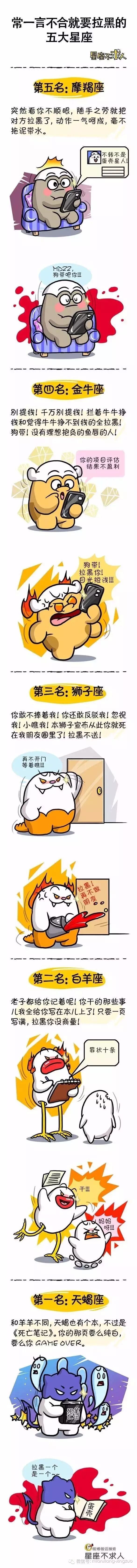 和平友善,讲究平衡的大天秤, 肯定是不会拉黑别人的—— 多不友好啊! 黏黏糊糊的巨蟹座经常善心大发, 动不动会被人忽悠和感动, 总想以情动人, 岂敢拉黑别人? 处女座要不断挑剔别人的不足, 仔细研究审查, 拉黑了就没机会了! 所以, 你是神马星座? | |