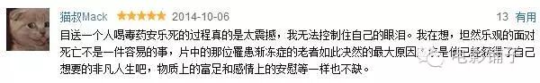 小到一件衣服,一顿晚餐,大到工作、伴侣······ 可老话也讲到:生死皆有命,半点不由人。似乎只要碰上有关生死的大事,大家就都开始信“命”了。 说到底,人,永远都在恐惧死亡。 仔细想想,出生由不得人,那死亡,真的就没得选吗? 今天,铺子为大家推荐一部纪录片。 《特里·普拉切特:选择死亡》 IMDb评分8.3 豆瓣评分9.0 这是一部有关安乐死的纪录片。 与同样由BBC播出的《如何死亡:西蒙的抉择》开放式的结局不同,这部片直接记录了一个人安乐死的全过程,从头到尾。 有影评人评价: 目送一个人喝毒药安乐死的过程真的是太震撼,我无法控制住自己的眼泪。 也有网友评价: 鉴于此片的价值,10分也不为过 特里·普拉切特是英国著名的幻想小说家,“碟形世界”系列奇幻小说为他赢得了世界的声誉。2007年他向读者宣布,他得了阿尔兹海默症。 身为作家,逐渐丧失写作能力对他是最大的折磨。 脑子里的记忆被“橡皮”擦的越来越干净,在完全丧失生活自理能力之前,他开始考虑选择自我结束生命的可能性。 “我愿意在有生之年,尽可能的享受人生的乐趣,然后···我想结束生命” 2011年,他走访了几位已经安乐死或者将要安乐死的病人,联合导演Charlie Russell拍下了这部纪录片。 第一位,Peter 患有运动神经元疾病,就是我们俗称的“渐冻症”。 从最开始只是感到身体无力,到全身肌肉萎缩,再到呼吸衰竭······ 很遗憾,目前医学上没有任何挽救的办法,病人只能离死亡越来越近。 Peter想通过安乐死脱离苦海,他的妻子也支持他: 我认为这样更好···总比苟延残喘的好。 第二位,Hugo Claus,他和特里一样也患有阿尔兹海默症。 Hugo是采访者里唯一一位已经执行安乐死的病人。 特里采访了他的遗孀。 回忆Hugo死亡的那一刻时,他的妻子有一点哽咽。 她说,她在他的耳边唱着歌,然后两个人一起唱。 他是在歌声中离开的。 这当然让她伤心,但是,她也为她的丈夫感到高兴。 拖着行将就木的身体受苦和主动拥抱死神,他选择了后者。 有人选择了死亡,有人还在坚持—— 第三位,Mick 与Peter一样是渐冻症患者,他选择了在临终关怀中心渡过余生。 他是安乐死的追随者,在他看来,如果本人和家人都觉得可以,安乐死是可以执行的。 甚至,他都已经联系过瑞士的安乐死服务机构。 但是,他现在更愿意乐观的来看待,他想跟命运抗争下去。 第四位,Andrew患有多发性硬化症。 他很年轻,才42岁。 大多数的早晨,他只能靠滚下来的方式下床。 他曾经自杀过两次,但都没有成功。他说,他只是想舒适的离开,没有疼痛。 在谈到去瑞士安乐死的时间时,他的表情就像是在谈论一次令人激动的出国旅行一样,很坦然,甚至是,期待。 瑞士是世界上唯一一个接受外国人来此安乐死的国家。 只要花一万镑(约合人民币十万块),服务机构就会为你安排好一切。 “在宪法第八章,有一项自我决定的权利,这项权利也包括自己的生命” 服务机构保存了全部会员的档案,白色的档案代表人还活着。 经历过一次假死之后,他们中70%的人永远都不会再来了。 因为他们还有活下去的力量。 讽刺的是,就在Andrew来到这里的几天时间里,他彻底的爱上了苏黎世,那些山脉,那些生命中美好的事让他动摇。 他有犹豫,但很快他就确定了,如果不快点完成这件事,以后就没有机会了。 趁着头脑还清醒,他坚定的走了下去。 最应该值得深思的是Andrew妈妈的一席话: 作为一个母亲我接下来的一周都会很动摇。我是不是应该把护照撕碎? 但这是自私的,并不是为他好, 在这件事上我和Andrew的想法不一样,我总觉得明天会更好, 我花了很长时间才意识到,他现在的生活质量已经差到让人无法接受, 无论别人怎么想,那是他们的决定也是他们的权利。 究竟谁才是自私的人? 是抛弃亲友选择安乐死的病人? 还是以爱之名阻碍病人用一种体面地、有尊严地方式离开的亲友? Andrew走了,特里用了他最喜欢的音乐为他送别。 接下来,电影从头到尾记录了Peter死亡的过程。 由于镜头过于直接,BBC曾收到过1200多份投诉。 Peter就像是在参加一个茶话会,在喝下致命的毒药之前,他还在和妻子讨论哪一块巧克力最好吃。 他没有半分犹豫就喝下了毒药,然后,向每一个人表示感谢。 以及,再见。 很快,房间里传来了他的鼾声。 他睡着了。 睡梦中,他停止了呼吸。 最后,停止心跳。 妻子一直在摩挲着他的手 亲眼目睹了别人安乐死的特里表示非常震撼,他不确定自己有这个勇气。 他没有选择安乐死。 2015年3月12日,特里病逝于家中。 很遗憾,他没能亲眼见到安乐死在英国合法化。 其实不止是英国,安乐死合法化在全世界都要有很长的路要走。 有人期待生命的奇迹,有人觉得长寿是一种惩罚······ 当我们不再恐惧死亡,也就不再恐惧生,生死皆黑暗,黑暗亦光明。 特里说过: 当我死去的时候,我希望死在阳光里。 我们没办法知道他死去时候有没有经历痛苦,但他建立基金扶持关于阿尔兹海默症的研究,为世人敲响了警钟,以及近他所能的给别人增加希望, 凭这一点来看,我们有理由相信,那一天一定是阳光普照。 最后,引用邓布利多的话来结束今天的介绍: 死亡实际上就像是经过漫长的一天之后,终于可以上床休息了。 而且,对于头脑十分清醒的人来说,死亡不过是另一场伟大的冒险。 电影铺子 微信 | movpuzi 电影大餐、生活甜点,荤素搭配,常吃不累 长按二维码▲识
