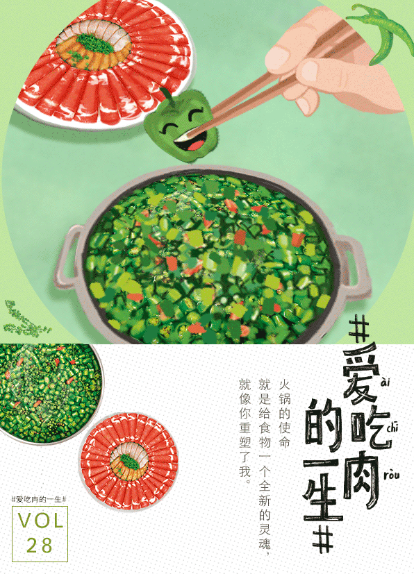 素材来源:数英网 下午三点半 进入今天的下午茶时间 2016年的冬天,比以往来得更冷一些,可对于吃货来说,冬天越冷,我心越荡,为什么?因为吃火锅更香啊! 什么羊肉火锅牛肉火锅鱼头火锅重庆毛肚锅台式海鲜锅酸菜白肉锅山珍菌汤锅肉麻藤椒锅…只要有肉,都是好锅! #爱吃肉的一生# 与减肥告别 奔向肉的方向 花前月下,对月吃肉 我吃过鲜香脆爽的春日竹笋, 也尝过秋日里甘甜滋补的桂花糖藕 但我最爱的 还是一年四季都沸腾不息的羊肉火锅...... 怎么大风越狠 我心......越想吃小肥羊 对吃货来说 谈恋爱是因为火锅 不能一个人吃...... 五月不吃肉 白来世上走 夜来幽梦有肉香 乍一想,小肥羊 你可能不知道 我吃起肉来 连我自己都怕 给我一个火锅 我能吃下整个世界 只要人人都吃上一口肉 世界将变成美好的人间 世上无难事,只要有火锅 有些火锅,说不上哪里好 但就是别的锅 替代不了 比起发现一颗新星 创造一款新的火锅汤底 对人类的贡献更大 火锅的使命 就是给食物一个全新的灵魂 就像你重塑了我 当你感觉孤单的时候 请看看面前的火锅 它们正为哄你开心而沸腾 腹有诗书气自华 胃有火锅精神爽 虽说听过很多大道理 未必能过好这一生 但我们可以吃一顿美味的火锅 开心过好这一天 想摘玫瑰,就不要怕刺 想吃火锅,就不要怕烫 人生有两样东西是永恒的 嘴里啃的肉和心中坚持的梦想 我做事从来都三分钟热度 喜欢啃肉锅却坚持了这么久 生活就是用欲望抵消焦虑 用啃肉代替寂寞 你的气质中 藏着你走过的路、读过的书 爱过的人和啃过的肉 岁月让我知道 除了火锅里的肉 谁都不必等 你永远都无法叫醒一个装睡的人 但是火锅可以 “我饿了”和“我喜欢你”一样 都是人生中的头等大事 这是小肥羊#爱吃肉的一生#系列海报,俏皮可爱,句句都是吃货的人生格言,不说了,我要开始逛吃逛吃逛吃逛吃…… 原创文章转载,请后台回复“转载”查看格式。 未经授权,私自转载,一律视为抄袭。 | |