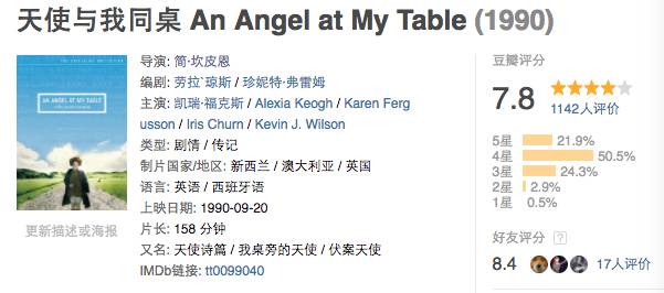 和演员一样,作家是一个毫无门槛的职业。 他们不是生活在孤独和穷困潦倒里,就是站在万千宠爱的聚光灯下。 人人都可以来掺上一脚,因为艺术并没有客观标准,所以总有那么多人在无事可做时提起笔来,将一时的空虚孤独误认为是创作的欲望。 读高中时最爱的一部电影是《卡波特》。 那时菲利普·塞默·霍夫曼还只是一个籍籍无名的二流演员,却为这个天才的同性恋作家带来灵魂。卡波特曾经说“没有人可以扮演我”,但他若见到霍夫曼想必也不会失望。为了写《冷血》,卡波特花了几年时间接触和他一样敏感脆弱的杀人犯佩里。他几乎可以说是残忍地诱骗了这个和自己惺惺相惜的年轻人。 采访结束之后,他不再为佩里上诉,目送对方上了绞刑架。而他在《冷血》的盛名之后,终日酗酒,再也没有写过一本书。 “我们就像是一对兄弟,只是佩里从后门离开,而我走了前门。” 对于卡波特来说,佩里就像一面镜子。他不知是爱上了佩里,还是爱上了自己。但是佩里的死,就像是他对自己宿命的判词。 如果他不是一个作家,也许他本也会是个杀人犯。 我本来以为作家的人生都应该是这样,大起大落,跌宕起伏。 但是简·坎皮恩显然不这样认为。 作为唯一一位拿过金棕榈的“戛纳之女”,她最负盛名的作品可以是当年拿了大奖的《钢琴课》,也可以是主角自带光环的《明亮的星》…… 但他们带给我的冲击力,都没有更加早期的《天使与我同桌》那么强烈。 这部自传体式的作品,讲述了著名新西兰女作家珍妮特·弗雷姆的前半生。 上世纪的新西兰,并不像我们如今心目中的“中土世界”那样,永远是蓝天白云,明湖如镜。它还残留着殖民时代的烙印,阴郁、压抑、精致,永远笼罩着来自太平洋彼岸的、旧时伦敦的雾。 珍妮特在国内好像并没有非常多的人了解,但却好像电影本身一样,是一颗不容忽视的蒙尘明珠。实际上,她可以说是新西兰战后最杰出的作家和诗人,其新颖、怪诞、天马行空的文风,时常被拿来和卡夫卡作对比。 而她也确实经历了太多苦难。目送家人相继去世,还被误诊为精神分裂,被仰慕的教授哄骗进精神病院,接受了长达八年的治疗,甚至差点就要接受前脑叶白质切除术。 这个现在因《飞越疯人院》《禁闭岛》而臭名昭著的手术,在上世纪四十年代的受追捧程度简直让人无法想象。 日本许多小孩子被他们的家长送去做前脑叶切除术,原因仅仅是家长觉得他们“不乖”。著名的美国总统约翰·肯尼迪的姐姐也接受了这个手术,后半生都变成整天只会发呆的“木头人”。 更可怕的是,二战前后,美国政府曾对一批遭受战后精神创伤的退伍军人集体实施前脑叶白质切除术。其中有相当一部分都遭受了伴随一生的严重后遗症。 当时连许多街边诊所都会打小广告 这也是为什么连珍妮特的母亲都同意了为女儿进行这项残酷无比的手术。她在疯人院里孤立无援,最终拯救她的还是她的小说。在手术进行前数日,她的作品获奖,才使得珍妮特被幸免于难。 但更为不幸的是,在整部电影的是,这似乎是文学唯一一次对她产生实质的“作用”。 除此之外,在简·坎皮恩的镜头下,这个女孩子显得实在太过平凡。 她曾经拥有一个温暖的大家庭,有父母和活泼的三姐妹,虽然伴随着姐妹的相继意外身亡,但她的童年并不是没有阳光。 但是她在这些年轻美丽的女孩里总是显得那么格格不入。因为她蓬松的红发、肥胖和笨拙。这几乎是一种与生俱来的自卑和无所适从。 她曾经有机会做一名教师,那样她想必就不会为生活担忧、可以轻易地找到一个愿意娶她的男人,更加不会被关进疯人院。 但是她面对着黑板一句话都说不出来,最终脱下了那双漂亮的小皮鞋,逃离了讲台。 她曾经有机会嫁给一个敦厚却无趣的男人。对方虽然显然没有受过良好的教育、言谈粗鄙、也完全不理解她的创作,但至少他向她伸出了橄榄枝。 但是她并没有留在那个伦敦郊区的小房间里。 她曾经和一个平庸、自我、热衷于夸夸其谈却懂得调情的美国诗人在西班牙拥有一段露水情缘,虽然那时她已经年过三十。 她快乐得甚至无心拿笔写作。假如他们真的结婚,或许她会愿意为对方洗手作羹汤,做一个平凡却幸福的家庭主妇。 爱情让她前所未有的自信。当她笨拙地在水里像人鱼一样诱惑自己的爱人时,或许她都不知道自己可以这样美丽,像提香笔下丰腴雪白的美人。 但他最后还是回到美国。她和西班牙,都只是假期的消遣。 单单只看这部电影,我几乎不会意识到,一个像珍妮特一样羞涩和笨拙的女孩,对新西兰文学史产生过这样大的影响。 她的自卑、脆弱、敏感、内向,让我仿佛透过电影荧幕看到另一个自己。面对所有人都紧张局促,做任何事情都小心翼翼,内心丰富却没有勇气表达,这样的笨拙和尴尬,本来就是个人面对世界时的永恒难题。 成濑巳喜男也曾经在《放浪记》中描述过一位同样自卑敏感的女作家。 在影片中饰演林芙美子的高峰秀子,贡献出了非常惊人的表演。她永远佝偻着肩膀,嘴角下垂、法令纹深陷,眼神像怨妇一样惫懒而颓废。 第一眼几乎认不出这是高峰秀子 林芙美子出生贫寒、一直生活在温饱线上,文学对于她来说,同样是天赐的财富。 除此之外,她和成濑其他的女主角一样,是一朵不能离开男人的菟丝花。于是她流连于一个又一个负心的男人身边,因为不断地被背叛,而