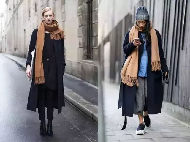 挑款师:tksclub 关注挑款师,我们一起变美! 天气真的越来越冷了,御寒时髦都要兼顾才行,今天小编就要推荐一个,能够保暖又高雅的搭配方案,就是大衣+围巾!围巾是秋冬凹造型的必备,当保暖的大衣遇上时髦的围巾,怎么穿更好看呢,我来告诉你! 根据大衣颜色搭配围巾 驼色大衣+围巾 驼色外套搭配黑色围巾,时尚满分 驼色大衣+黑围巾,搭配黑色紧身裤,美到没朋友! 一件驼色外套的配色方式多种多样,搭配灰色围巾多了一些雅痞,两种温暖感十足的颜色特别配 如果你足够有腔调,选择和驼色大衣同色的围巾,围巾的颜色选择较深一号色,或者较浅一号色或更有层次感 纹格围巾也是驼色大衣的好朋友,与黑色大衣相配更突出成熟干练 黑色大衣+围巾 黑色+驼色是最经典的配色方式,在黑色大衣上同样适用,驼色围巾配黑色大衣少了一些温柔感,多了一些帅气! 稍微调整一下围巾,不规则的围一圈秒变潇洒冷美人 黑色大衣+灰色围巾颇有韩范儿,搭配长靴优雅,搭配运动鞋休闲 搭配白色围巾,只需调换一条裤子,你可以随意在朋克和雅痞中自由切换 冬天怎么能没有一条红色围巾?搭配黑色大衣超有型! 同色大衣+同色围巾 黑色大衣配黑色围巾超显气场,全身黑色需要在小单品上提亮,一件白T恤或者一双亮色的袜子,都可以提升整体搭配 浅色大衣配同色围巾,是气质高雅有韵味,温柔满满 灰色大衣配灰色围巾超显气质,配白色的单品鞋子或者裤子,都透着女性的成熟干练 深蓝色大衣配深蓝色围巾,不挑肤色不挑身材,搭配一双切尔西靴英伦又复古 有层次感的搭配更显示搭配功力,浅蓝色围巾配深蓝色大衣 驼色大衣也可以使用,这种浅色配深色的搭配方法,更显时髦 围巾怎么选? 颜色 围巾的颜色非常重要,颜色决定了是否能让整体的造型更和谐,最基础的黑白色,是围巾经典百搭不会过时,衣橱必备色 灰色气质高雅有韵味,最能突出质感,最重要的是百搭,无论什么颜色的大衣,都可以随意搭配 驼色是秋冬最显贵的颜色,不论是鲜艳色还是深沉色的大衣,搭配驼色围巾都能搭出高级的质感 尝试了经典百搭的低调色,还可以尝试吸睛的红色,一抹鲜艳的红,搭配气质大衣,能让你在寡淡的秋冬,美成一道街景 除了纯色围巾,经典的格纹围巾,透着一股复古的英伦风,气质高雅出众 材质上 羊绒材质的围巾质感突出,搭配毛呢材质的大衣碰撞出高雅的品味 毛线材质围巾温暖淑女,优雅的味道扑面而来 | |
