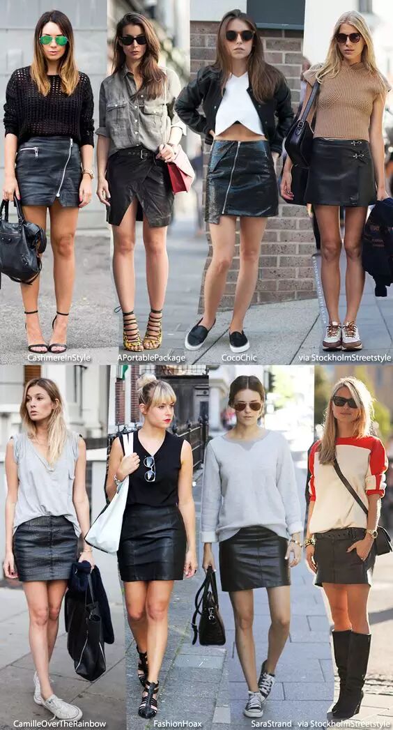 每到换季,总会有很多妹子抱怨没有衣服穿了,今天我必须要吹一波皮裙,性感十足,少女感不可缺少,秋天撩汉就靠它啦~ 百搭而且时尚的皮裙, 衣柜里可不能少了这么一条, 明显,各种大秀场,街拍什么的, 从来少不了它的身影。 皮裙,以其挺括的质感、有光泽感的面料, 在竞争激烈的半裙领域里打下了一片天。 时尚潮人们都已经穿上了那条吸睛的皮裙, 你还在等什么? 赶紧和皮裙来个约会吧! 看看这些国内明星她们可都穿起来小皮裙哦~ 刘诗诗:字母T恤+小皮裙+外搭 刘雯:针织衫+皮裙 杨颖:字母T恤+小皮裙+外搭 唐嫣出席某活动就是穿得Coach的模特同款拼接皮裙, 大家可以感受一下,尽显唐嫣的大长腿。 所以这个季节皮裙可以正式登场啦, 不过, 在穿皮裙之前你想好到底应该怎么搭配了吗? 其实皮裙算是裙子类型中质感和设计都很硬朗的一类, 所以自然也很适合秋冬穿着, 你们照着穿就好啦! 短皮裙 少女们不论春夏秋冬都少不了一条短裙! 不管是A字裙,还是单排扣裙,还是直通裙, 膝盖以上的小皮裙+打底袜就可以横行一冬! 而且颜色也是诸多选择, 黑棕酒红以及麂皮绒色,少女们都可以挑战! 其中英国it girl钟小姐就是个中高手! 毛衣宽松与否,塞不塞进裙里, 少女们说了算! 针织衫也能搭, 柔软和硬挺巧妙地融合在一起 与宽松毛衣或卫衣更是绝配, 上松下紧, 协调得刚刚好 冷的时候加一双黑色打底袜, 丝毫不会觉得突兀 | |
