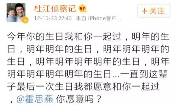 最近听说霍思燕和杜江刚确定关系的时候,双方好友秦岚和李晨原来都觉得不靠谱! 李晨和杜江是铁哥们,当李晨得知他俩谈恋爱时,发出了大大的“啊”声,一副下巴掉地上的样子,然后发出了一串言不由衷的“好”。 霍思燕这边更悲剧,秦岚直接把思燕拉到一边说,“冲动是魔鬼,冲动是魔鬼,冲动是魔鬼”。看来真的是重要的事说三遍。 其实小编一开始知道他俩的事儿时,也觉得这段感情不靠谱! 当杜江初遇霍思燕,他是小她5岁的弟弟 2006年,杜江还是上海戏剧学院的一名学生。当时他和郑恺一个宿舍,郑恺在墙上贴了一张《我要成名》的海报,图个吉利。刚好,这海报就在杜江的床头。 而这部香港电影正是由霍思燕主演。这是杜江第一次见霍思燕,当时的他以为她是名香港演员。 霍思燕的这张海报,杜江一直看到毕业。大概真的是有缘,进入娱乐圈后,因为共同朋友的关系,杜江和陪伴他大学时期的女神霍思燕认识了。 有了以上这么偶像剧的开始,不用芭姐说你们也能知道,杜江当然是对霍思燕有好感的。但没想到,霍思燕对他竟然也有好感! 就是这么水到渠成,两个有互有好感的人走到一起了。但是,他比她小5岁,她的名气也比他大太多! 除了他俩的朋友,连媒体也并不看好俩人,甚至根本不怎么认可他。他俩每次出去被拍到,媒体出的新闻写的都是“霍思燕携男友……”。 年纪差异大,事业差异大,连小编在当时都觉得,杜江就像霍思燕的一个包,跟她在一起,就是她携着、拎着把他带出去溜。何况他还这么帅,说不定哪天就被别人给抢走了! 再大的差距,也敌不过真爱 但杜江从未介意过他们之间的差距。反而他很骄傲他的人生能有两个名字,一个是杜江,一个就是霍思燕男友。在他心里,她够优秀他自然就很开心。 无论是什么时候,杜江都爱陪着她。霍思燕拍《爱情前面谁怕谁》时,杜江全程在剧组陪着她。 生活中,杜江甚至会陪她去菜市场买菜。而多少男人陪自己的女人去商场逛街都不愿意! 2012年,霍思燕生日那天。杜江首次公开了恋情。差距再大又怎样,他就是想陪她一辈子。 2013年6月,杜江向霍思燕求了婚。这时,她已经有了他们的宝宝,他终于可以顺理成章的把她娶回家! 求婚当天,霍思燕正在像往常一样睡午觉。她醒来时,被杜江带到了一句布置好的院子里。他在地上铺了一吨爱的瓷砖,上面拼着“燕燕”俩字。 如果你以为求婚就这么简单,那就太低估杜江了!就是这一块巨大的告白板上,杜江用了3天,亲手写下了俩人交往以来说过的甜蜜话语。 他把甜蜜的回忆摆在了她的面前,就是为了把她娶回家,也承包她未来的所有幸福啊! 真爱,让他成为靠谱的好男人 其实结婚前,杜江的生活自理能力真是不咋地,都得靠霍思燕催着他去洗澡、刷牙,头发长了还要她提醒他去剪。 但是婚后的杜江,也是变得让人想不到的靠谱!霍思燕怀孕期间,他放下所有工作每天都陪着她,照顾她的生活,逗她开心。 他怕她长妊娠纹和腿脚浮肿,每天晚上帮她用专门的按摩霜按摩,每次都要一两个小时,每天不间断。她曾问过他为什么这么坚持,他说怕她长一条纹会不开心。 都说怀孕的女人最难搞定,但他的表现简直就是满分!孩子出生当天,好多父亲都是顾着看孩子却忘了老婆。但杜江是看了孩子就回到她身边陪她。 她打了麻药还不能动,他就陪着她在产房,告诉她孩子长什么样子,好不好看。 尽管他比她小,但总是他照顾她多一些!在家,他会为她做早餐 出门儿坐飞机,他也是跪坐在一边,伺候这娘俩 在外也是各种开启忠犬模式。跟她一起去发布会,记者总是能在间隙时听到杜江温柔地对她说“宝宝,渴吗?喝水吗?” 她出去工作回来得再晚,他也会等她回家。怕她饿,还会给她做好吃的。 除了无微不至地照顾她,这么一个大帅哥还会各种自毁形象地想着法儿逗她开心。 扮米妮也在所不惜 吵架了,也从来都是他道歉哄她。 平时,也是会给她拍各种美美的照片。小编真的想问问霍思燕,有一个会拍照会做饭的暖男老公,究竟是怎样的体验? 曾经,大家都觉得这个长得帅、比霍思燕小的杜江不靠谱。但看到这里,你还会这样认为吗? 只要你们够相爱,再大的差距、再多的问题,都不是阻碍! 而且,现在又有了又萌又帅的嗯哼大王,话说小编也是大王的耿耿忠心的粉丝呢, 大眼萌爸和萌娃一起的感觉,看得心都融化了 一家三口一起出镜的即视感,单身狗是不是收到了100000点伤害。。。 小编觉得,我发这个完全就是在自虐嘛,算了,明天就找个男票去~~ 女人ID:mrmtmw ▲长按二维码识别关注 简介:做女人,嘴要甜,心要狠,做事要绝,地位才稳。 | |