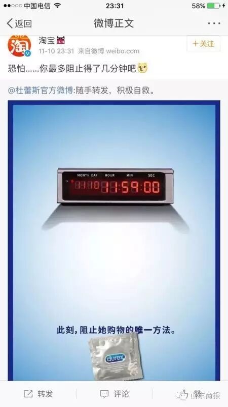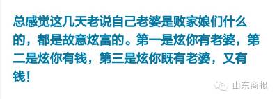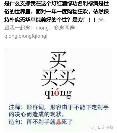 52秒10亿!!! 6分58秒100亿!!! 疯狂!疯狂!疯狂! 今年双十一 败家娘们,你们又赢了!! 0:00一过 淘宝又被挤爆了 而济南的电商韩都衣舍 仅用15分50秒 便突破1亿元 有人付款是这样的…… 要感谢马云,因为他的存在,现在一提到双十一,别人都会问我你买了什么,而不是问你为什么还是单身狗? 单身狗!!!(也不知道单身狗招谁惹谁了!!!) 还有人说,所谓的双十一就是:剁手党用狂欢掩盖单身狗的孤单! 呃,这个,只想说,你们这样子有考虑过单身狗的感受吗?有吗?简直是太丧心病狂了啊啊啊! 看来这个世界不是你们的,也不是我们的,而是段子手的呀呀呀呀呀。 今天,带大家了解下段子手的双十一是什么样子的。 昨晚,杜蕾斯也被淘宝打败了! 一老公看完新闻对媳妇说:“北京一快递员送200个左右快递,猝死。” 媳妇说:“这么年轻就死了,太可怜了。” 老公回头,语重心长地对正在网购的媳妇说: “没有买卖,就没有伤害” ——谨献给双11逮啥买啥的败家娘们 我必须时刻保持理智,不因一时冲动而去消费,心理学上把这种现象称为——没钱。 以上都不算什么了,看看下面这个,真的是无力反驳了: 好了, 手该剁的也都剁了。 今年心里长的草也都拔干净了 看完上面这些段子 接下来 该笑着吃土去了 编辑综合 张同霞 点击此处,一秒免费订阅本号 该剁的也都剁完了 为自己 | |