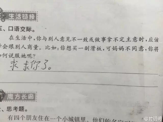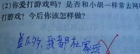刚开始一脸懵逼 然后就是爆笑! 这娃娃很机智啊~ 至少对错知道用空格区分啊~ 其实,00后段子手早已经不是新鲜事了 ▼ 鸭子招谁惹谁了 ▼ 冷蛋??? ▼ 有理有据 我求求你了 ▼ 难道不是爱吗? 电视里都是这么演的! ▼ 莫言无语了 ▼ 你懂得太多了 ▼ 小朋友,你这回答挺随意 ▼ 这么小就学会自黑啦 ▼ 风和雨为啥要交配??? ▼ 小蓝孩们你们明白了吗? 女孩子从很小就比你们成熟了 ▼ ??? (我装作看不懂的样子) ▼ 看不出哪有毛病 ▼ 你这是要在试卷上结印啊? ▼ 审题严谨 没什么不对呀 ▼ 真草图 有什么问题吗? 不是你要草图吗?! 我给你了啊! 干嘛还给我鸭蛋!怒! | |