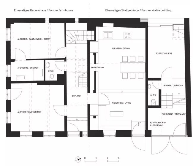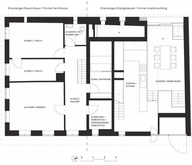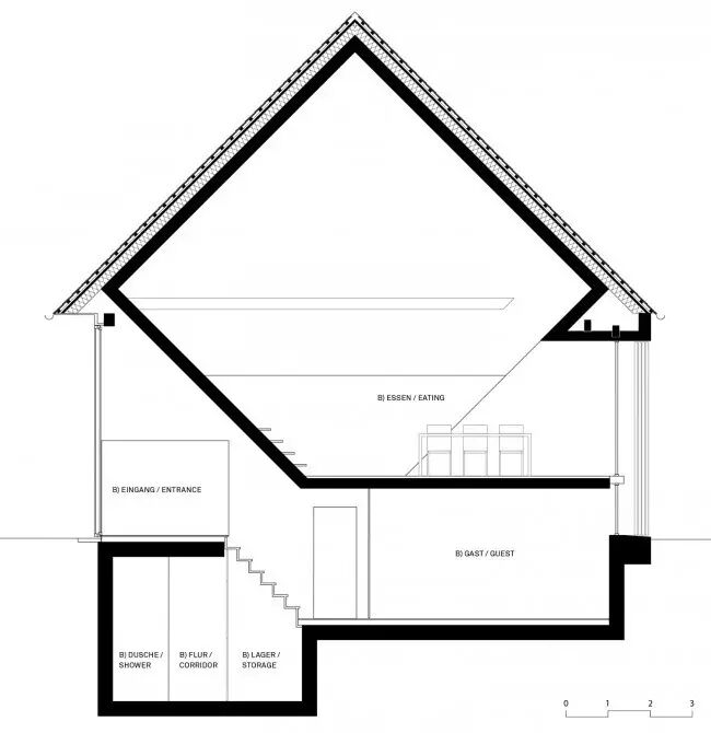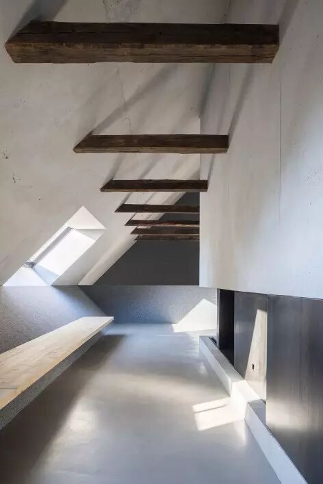 一间破旧农舍 如何让其焕然一新? 成为古朴风格的现代居室 理想中的世外桃源? 现代的设计师们都热衷于旧屋改造,经过魔术般的变化,农舍保留了原始的古朴风格,更增添了时尚的元素,让两种风格相互交融,呈现独特的风格面貌。 Stockerweg 11是Reim地区最老的一栋房屋,建于1750年,是一间两层高的农舍。其主人要保留这座历史建筑的独特性。 建筑设计的概念基于两点期待: 保留老建筑的实质 同时引入创造性的空间 ↓改造前与改造后的房屋 于是建筑师Peter Haimerl创造了一个塑造空间造型的决定性构件:一个与地面呈45°角的混凝土方体,它与屋顶的桁架整合在一起,沿着三角形的屋面从房屋的一侧延伸至另一侧。 在方体的顶端,原来的马厩的位置,建筑师设计了一间小的画廊,其中尽可能地保留了原来建筑的特征,并使它们重新回到视野之中。 ↓ 混凝土方体是设计的神来之笔 ↓ 一层起居室 原有结构框架中的房间,与方体元素交织在一起,形成别具特色的空间。建筑分为东西两个单元,彼此分隔却又通过交通空间相联通。 ↓ 楼梯 ↓ 墙面保留原来的开窗 ↓ 平面设计图 更多相关热点阅读▼ ?日本木屋,堪称传统木与现代艺术的完美结合 ?清雅含蓄,如何抓住设计中的那些新中式元素? ?独家剧透:2016艾特奖五大刷屏看点大爆料 ?【微站】朱文标:注重城市与建筑的内在联系,强调环境和谐统一。 ?缅怀大师jaya,用世俗的眼光“亵渎”他留在中国的仙居 点击下方“阅读原文”,查看朱俊翔微网站。 | |