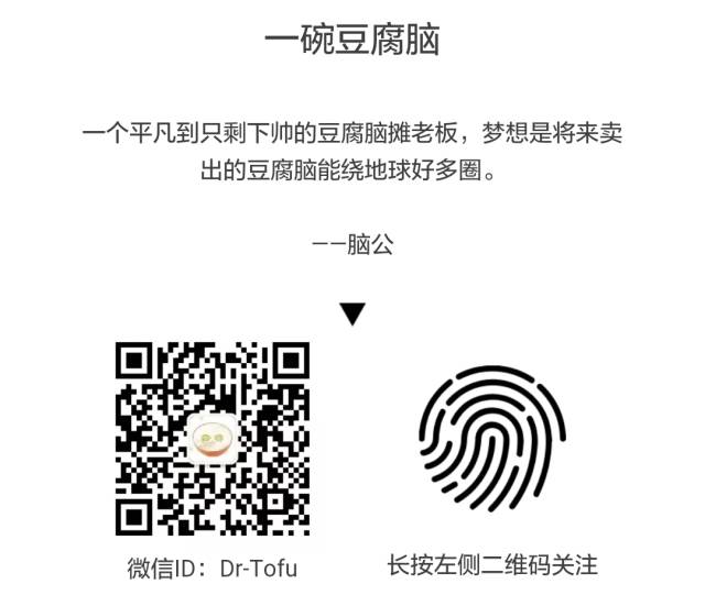 这是一碗不那么正经的豆腐脑,请认准“宇宙第一帅”认证标识。 别忘了叫我脑公。 微信号:Dr-Tofu