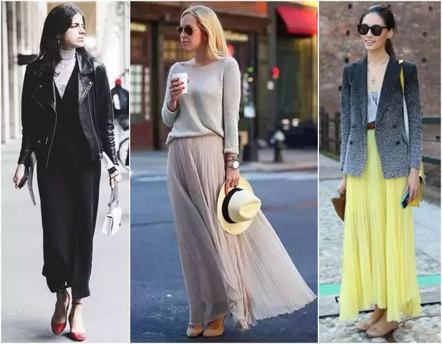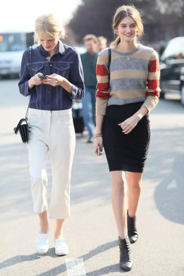 随着天气日渐凉爽,秋天也到了,很多女人都已经开始穿出自己的裙子了,这个时候裙子一定不能乱穿,想要的漂亮有气质,就要学会穿这3款半身裙。 1、包臀裙 条纹针织衫搭配黑色蕾丝包臀裙,随性中带着一丝性感,脚踩黑色短靴,时髦有范儿。 欧美街头,简单的T恤或毛衫搭配包臀短裙,简单、帅气,但又不失時髦利落感的穿着! 【3】大长裙 春天最流行穿长裙搭小外套,这样不但不会觉得冷,也会因为小外套和扎腰的设计,将腿部线条修饰的特别好。 皮衣配碎花长裙,温柔中透着帅气,顶着高高的丸子头,特显俏皮。 看着很舒服的打扮, 蓝色针织衫搭配白色大长裙,脖子上的项链很显脸小哦。 3、牛仔裙 | |