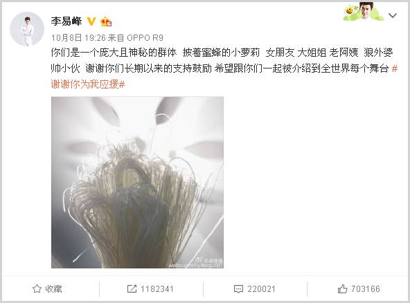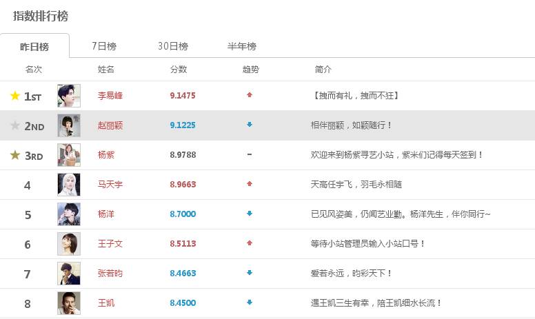 苦追三个月的青云志终于收官了。 看完之余,小编也和许多小伙伴一样激动。 第二季什么时候播出啊? 小凡和碧瑶会不会终成神仙眷侣? 说到诛仙,李易峰、赵丽颖、杨紫就是备受大家关注的爱豆啦。 今天小编就来说一说李易峰。 2016年李易峰主演的两部电视剧《诛仙青云志》和《麻雀》都取得了不错的成绩。 在寻艺播放量排行榜上可看出,播出时长三个多月的《诛仙》在半年榜中赫然排行第一,而近来的一天榜、七天榜、一月榜都始终占据第一。 收官十余天的《麻雀》仍占据前六,算是很不错的成绩了。 而李易峰在指数排行上也是占据第一,深得粉丝喜爱。厉害了word峰峰! 说起wuli峰峰,你以为一直都是这么顺利的么? 并没有。 可能很多人对峰峰的印象还停留在2014年的《古剑奇谭》 认为他是因这部剧而一夜爆红。 但其实峰峰是在2007年随《加油!好男儿》出道的。 随后也演过几部剧, 如《加油网球王子》的左博,《幸福一定强》的项允超,《千金归来》的林皓。 《加油网球王子》 饰演左博 《幸福一定强》饰演项允超 千金归来 饰演林皓 但都不温不火,没有使他红起来。 7年的沉寂,终于在2014年《古剑奇谭》上爆发。 李易峰连续78天蝉联Vlinkage艺人榜单第一名,Vlinkage指数达9.8213 创大陆演员单日新高。 随后,他主演了《小时代》、《活色生香》、《盗墓笔记》等。 《小时代》饰演 简溪 《活色生香》饰演宁致远 《盗墓笔记》饰演吴邪 获得2014ELLE风尚大典年度新锐风尚艺人奖, 这也是该奖项第一次颁发给男艺人。 并获得2014年国剧盛典内地最具人气男演员和最具商业价值男演员奖。 2015、2016年,他火力全开, 参与了管虎导演电影《老炮儿》, 参演了《诛仙青云志》《麻雀》等多部电视剧。 《老炮儿》 饰演 张晓波 《麻雀》 饰演 陈深 成为炙手可热的“小鲜肉”, 也成为越来越好的演员、歌手, 他越来越朝着他的期待发展。 论长相而言,李易峰的五官是帅气俊朗的。 粗眉毛、大眼睛、翘鼻头、唇线清晰、下颚棱角分明,几乎就是女生心目中的男神写真。 而他率真、温柔、随和、勤奋、上进、感恩、敬业、呆萌, 更是让迷妹们心动不已。 在工作上,他敬业勤奋,不断磨砺自己的演技。 他说,“获得观众的认可,都是我靠自己的拼搏和努力得来的。” 在生活中,他过好属于自己的平凡生活,孝顺父母。 对待争议和诽谤,他反而用淡然的态度面对,直接澄清。 对待粉丝,他温柔随和,感恩粉丝。 李易峰给所有人的感觉都是一个温文儒雅的男子,不争不抢,但不断学习。 他的认真敬业、待人和善也影响着他所有的歌迷。 这就是偶像最大的力量吧。 让喜欢自己的人也和自己一样, 不断学习 让自己变得更好。 | |