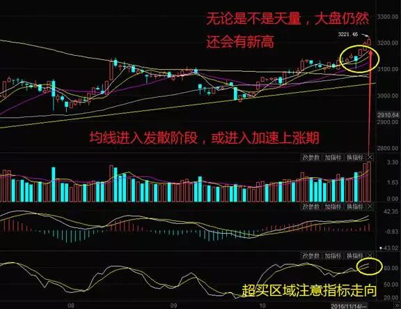 中铁二局作为权重的标杆涨停打开说明市场对于继续拉升存在了一定的分歧,午后大盘一度翻绿。而随着权重企稳中铁二局再度封板,大盘尾盘再次拉回站上3200点,全天成交再度创高至3470亿元。 板块上看,港口航运、煤炭开采、高端装备涨幅居前,有色板块下跌。而前期妖股今日大多深幅下跌。 明日看点: 小震荡或有但大方向仍可看好 大盘每次都搞出货意料的事情,按照周五期货的表现本预计今日大盘或有所调整,结果今天反而先放量拉升。今日放出近期最大成交量,但是否为天量还不好说,需要后期确认,但个人认为大盘行情还没有走完,因为即便是天量后期还是会有新高出现,所以大家目前还是可以放心。 从技术上看,上证指数日线均线多头排列且均线有发散趋势,成交量放大且指标继续走强,依然可继续看好。 但需要注意的是,KD目前开始进入超买区间,需观察指标变化提防出现日线级别调整。从小时线看KD指标需要修复,除非以更大的量能重新走好,所以短期或有小的震荡调整,重点关注量能变化。而后期资金面上重点关注回购利率以及两融数据的变化。 操盘策略: 多元配置,吸纳低位权重股待涨 目前机会依然在主板,目前8成仓位重除了底仓配置3成成长股,4成保留在主板中,还有部分仍留存在高送转次新股中,目前配置争取收益和风险的平衡性。 对于已经上涨较多的中字头操作上要求比较高,参与需要较强的实战能力。 需要控制风险的可布局在尚未启动的权重板块中,如电力板块也受改革影响,估值水平和股价位置都具备一定的上涨动力,如果看好大盘行情又没有什么可选标的的情况下不失为一种选择方向,走势或复制大秦铁路。 此外部分机械个股近日表现出色,而船舶制造类的权重也处于底部,所以也采取了一定的配置,等待市场资金关注来临。 热点捕捉:深港通和大宗品相关个股 深港通开通前,相关类别股票仍可继续关注,此处就不再多说了。 近期大宗品个人认为机会仍然很多,当市场资金无处可投时,尚处低位的大宗品绝对是可炒作的对象,后续依然可以看好,大家不必追高但仍可逢低关注,趋势性机会仍在。 下面二维码是分析师王老师的助理微信,王老师为国家注册分析师,十年以上从业经历,曾参与管理的定赢基金2007年居朝阳永续中国私募基金风云榜第五名,在实盘中他更侧重操作技巧的运用,选股及买卖点的把握能力很强,有需要的可加好友,希望能帮到更多在股海中沉浮的朋友! | |