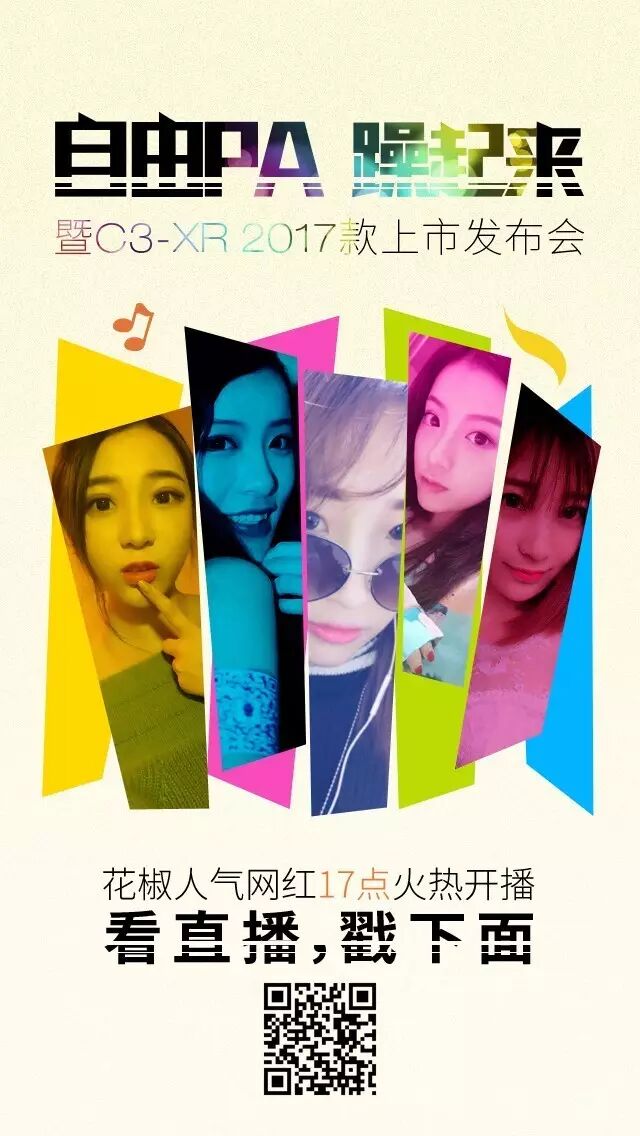 当下的年轻人敢于标榜自我,热爱自由、多元、有趣的生活,内心渴望得到释放,然而世俗的条条框框一直约束着他们躁动的心,C3-XR 2017款上市发布会特地搭载风靡全球的“Run For Your Lives”!打造狂欢自由PA,引爆你心中的躁! 不仅如此,从花椒直播“东风雪铁龙C3-XR《维纳斯之战》”重重选拔脱颖而出的三大女神主播联袂加盟本次自由PA,这或许是你离女神最近的一次了,就问你约不约!三大女神能否和幸存者一起逃出生天?让我们进入直播间,密切关注! | |