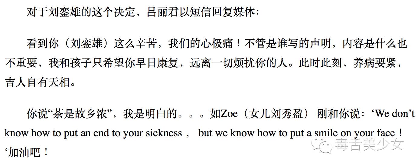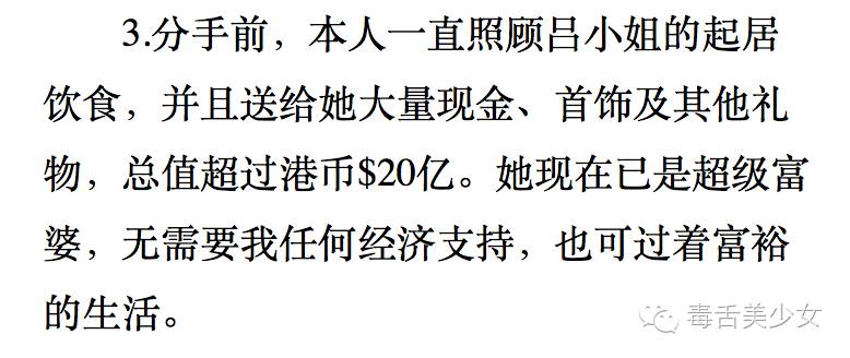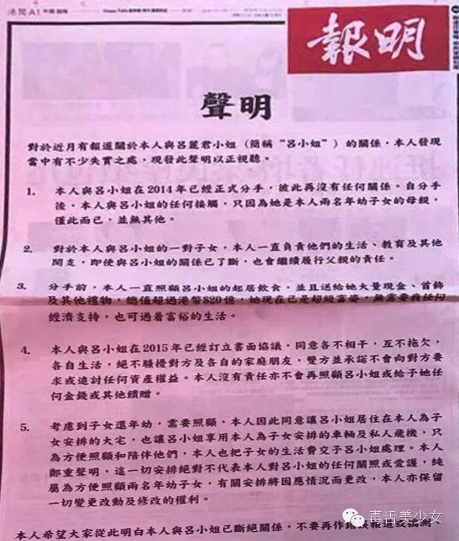 今天,刘銮雄登报正式声明吕丽君OUT! 看到网上很多人感慨“赢家”甘比……?? 叹她懂得讨老人家欢喜 叹她教育子女有一套 叹她会用美食攻略 叹她可以让前任不出恶语 叹她当年作为记者能与名人成为朋友 叹她稳得住是干大事的人 叹她笑到最后 叹她和邓文迪一样厉害,出书一定买! 要她出书? 吃瓜的我…更想让吕丽君出书!?? 落选港姐! 长相平平! 可! 从港姐冠军到落选港姐,从看脸到不看脸,从初见光鲜(舞台银幕荧屏上的明星)到朴实(名牌店售货员),她成了刘銮雄情史的转折点。 高调张扬! 行事冲动! 可! 做了公开质疑甘比孩子生父这种让刘銮雄感觉没脸震怒表态不会原谅的蠢事后,还能取得原谅完了稳住女友身份过不到2年再生一子。 港真,比起高情商甘比隐忍低调努力像是争宠教科书的“逆袭”人生,我觉得吕丽君戏剧般的“逆资质”人生更精彩更有看头。 总说吕丽君蠢,然而人家偏偏就以放宫斗剧里毫不起眼的背景~毫不起眼的姿色以及活不过一集的脑子硬是陪在刘銮雄身边十几年!甘比上位挺套路可总结,而她实在让人费解啊!?? “正牌女友”“刘太”滑到“1号女友”最后滑出局,看着像是输了,其实未必,路还长,谁知道会不会有续集! 不厚道地说,按吕丽君回应那仍旧意有所指(“不管是谁写的声明”)情里藏刀的劲儿,感觉以后很可能会上演一场能让TVB豪门剧取材影射的撕逼戏。 哪怕没有反转,“惨”字也落不到她头上。 身家可观,超级富婆! 基本不必承担一对子女的开支~(向来对孩子大方的刘銮雄不会不管) 可以继续享用大宅车辆私人飞机! 和留下来照料刘銮雄的甘比相比,谁日子过得更滋润不一定的说。 非站队,两边都不白莲,只是主流评论的输赢太简单粗暴了,忍不住出来换个角度说说…?? 我觉得吕丽君不作死的话会更逍遥些,作为未满40岁的超级富婆,看开后可以随时准备放飞了。 | |