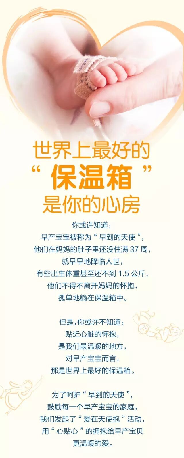 在11月17日“世界早产日”来临之际,美赞臣发起了呼吁关注早产儿宝宝的“爱在天使抱”活动。传递对早产儿宝宝的温暖关爱与对早产儿家庭的支持鼓励。