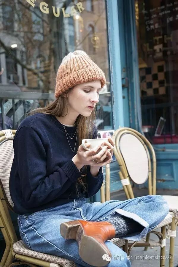 针织帽不卷的戴法,会将视觉焦点更加集中在脸部