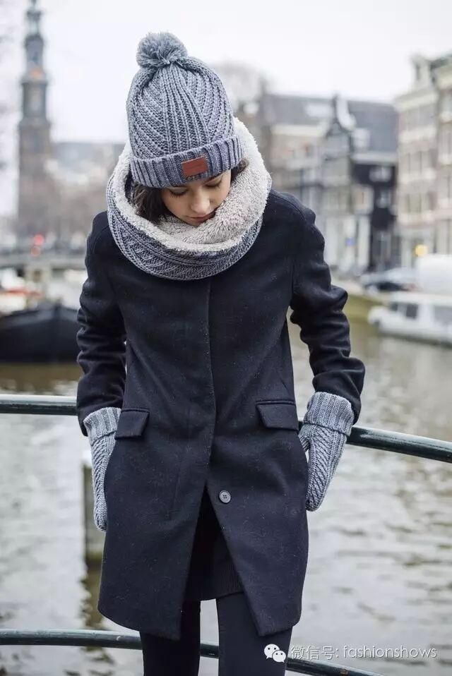 灰色针织帽始终保持着那份低调,大方