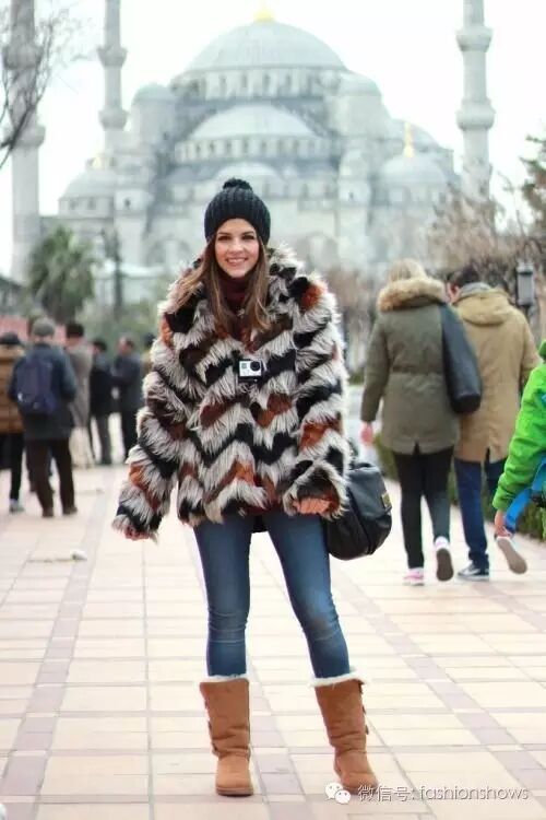 皮草与针织帽的组合绝对是冬季街头的温暖搭档