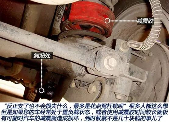 车无完车,很多车主会对自己的爱车有这样或那样的不满意,比如油耗高、减震硬、提速慢等。很多商家从中嗅出了钞票的味道,纷纷推出这样或那样的汽车用品,号称能解决车主的一切烦忧。在此猫叔就为各位盘点三种纯属忽悠类型的汽车用品,简单易懂的分析其不科学之处,让大家不再被商家所蒙蔽。 1为追求舒适者准备的“减震胶” 不少车主对于自己爱车的减震效果不是很满意,觉得不够舒适,所以就花钱购买了这种安装在弹簧上的减震胶。下面是商家对此款产品的介绍截图。前面阐述的产品效果真假先不说,最后一句“享受顶级车的舒适感”怎么听都像是骗人的。如果几十块钱就能有这样的效果,那么多人有何必话几十万去买车呢? 购买这个产品的用户大多是抱着一种试试看的心态购买的,一是因为它本来的价格不是很贵,二则是它安装起来十分方便,自己动手就行,不用找修理厂。 “反正安了也不会损失什么,最多是花点冤枉钱呗”很多人都这么想,但是如果您的车经常处于重负载状态,或者使用减震胶时间较长,就极有可能对汽车的减震器造成损坏,这样的例子不少,比如下面的这位车友。 根据弹力公式F=kx(K为弹力系数,x为弹簧压缩长度),在增加减震胶之后,弹簧的压缩长度减少,而弹力系数不变,得出的结果就是弹簧的弹力值下降了,通俗的说就是弹簧变软了。这导致路面上的颠簸和震动更多的被减震器吸收掉了,减震器长时间的高强度工作,漏油也就是在所难免了。 然而减震胶的危害还远不如此,安装减震胶后的车辆大力制动时,变软的弹簧会导致车辆重心的迁移更加严重,对于前置前驱的家用车来说更是如此。此时前轴上的刹车系统将会承受更大的负荷,而刹车力度不变,这就导致刹车距离变长,在紧急时刻会有发生事故的隐患。(待续) 猫叔点评 天上没有掉馅儿饼的事情,花几十块钱就能的到高档车驾乘感受的便宜事儿,只要认真思考一下就能明白其中的蹊跷。但是不可否认的是,减震胶确实会使弹簧变软,但换来的是减震器提前报废和刹车距离变长的代价,值不值得就需要您好好掂量一下了。 近期阅读:《洗车这件小事也能省大钱,真是不算不知道!》 车维修联合66汽配 为车主提供原厂配件代采购活动。 想要采购原厂配件的车主,请在文末留下您的QQ号,将有工作人员联系您。 活动仅对现代、丰田、起亚、宝马、奥迪车主有效。其他品牌车主敬请期待! | |