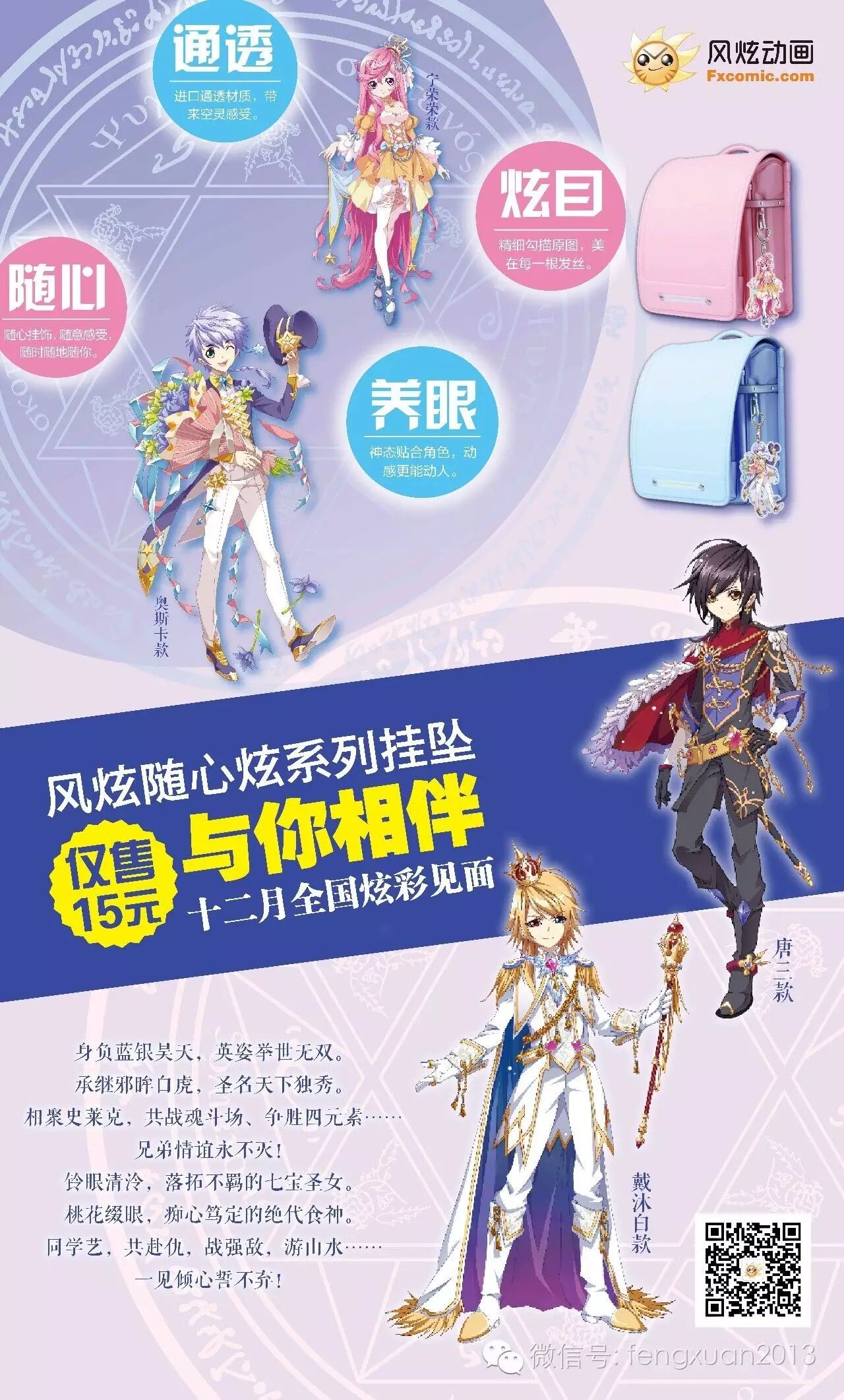 还记得上一次,小舞和朱竹清的挂饰吗? 你们都买到了吗? 这两个可爱女生,我们怎么忍心让她们孤单在外。 于是这一次,我们把唐三和戴沐白放出来保护她们啦! 有情人就该成眷属! 奥斯卡、宁荣荣也来凑热闹! 这次我们让史莱克七怪之间的爱情,全数集齐! (心疼马红俊一秒钟) 你们准备好把他们带回家团圆了吗? 12月,我们具体说明“随心炫挂饰”和《斗罗大陆》单行本32的购买途径! 时刻关注我们,以后可能有送挂饰的新活动哦, 说不定幸运的你就是预定拥有者, 不要错过哦! 《风炫漫画》每月10日、25日全国发售,到你附近的书报刊亭,带TA回家吧! 《风炫漫画》杂志官方微信投稿邮箱:weixin@fxcomic.com 动态,八卦,读后感……统统都欢迎 | |